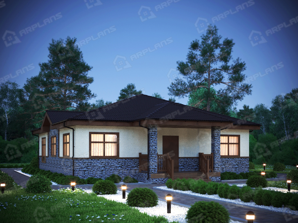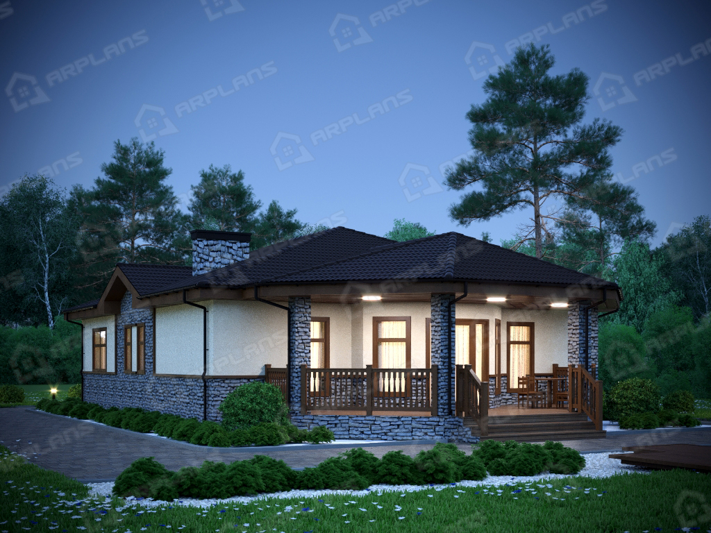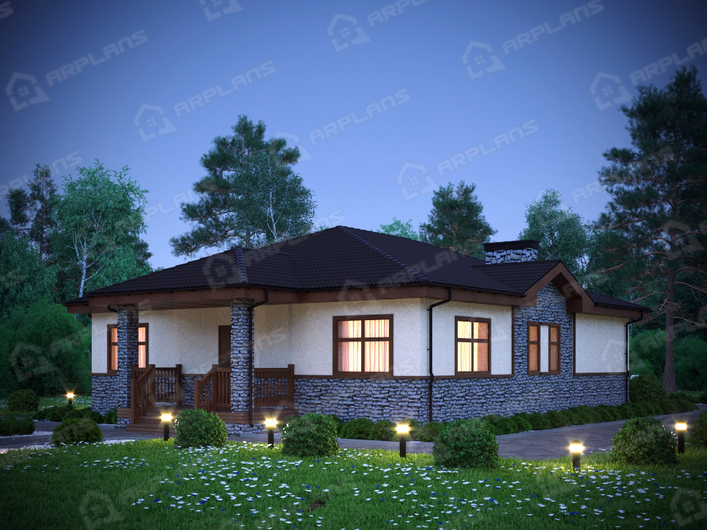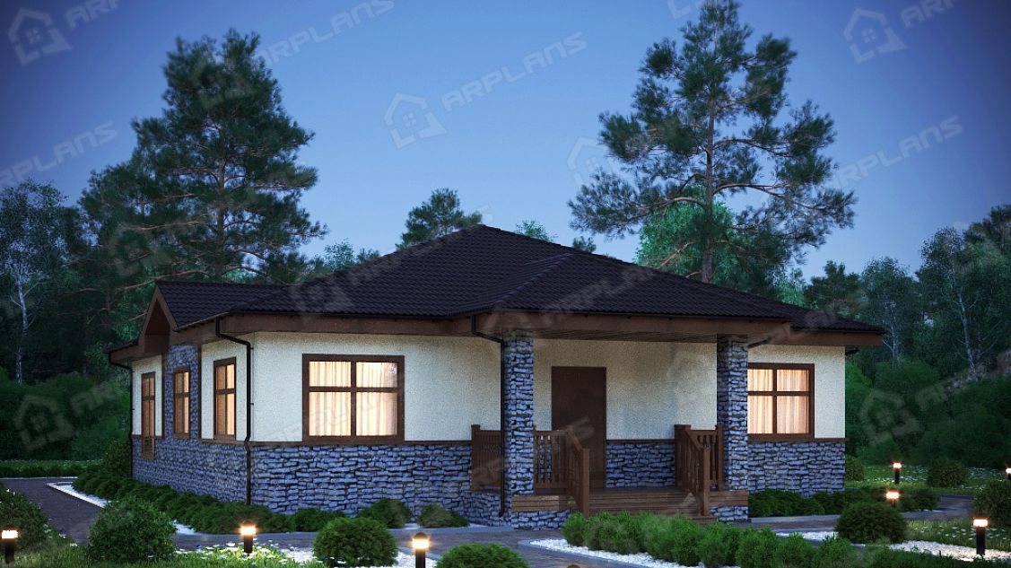 S4-155 (К-221) Проект красивого одноэтажного дома из газобетона К-221. Общая площадь дома - 155 кв.м, габариты с террасой 18.80х11.50 м. Дом из газобетонных блоков с облицовкой штукатуркой с 3 спальнями. Одноэтажный дом прямоугольной формы с небольшим эркером и украшающей дом террасой, повторяющей линии эркера. Конструкция крыши - "конвертом", не утепленная (чердак холодный). Вход в дом осуществляется через небольшое крытое крыльцо, попадаем в небольшой тамбур, который отсекает холодный воздух. Далее коридор, с мини-гардеробной (встроенный шкаф в холле).Из холла в центре дома можно попасть в любое помещение. В доме 3 спальни, небольшой санузел в 4.5 кв м, газовая котельная. Гостиная в доме большая - 33,5 кв м. Украшает ее эркер, в котором можно поставить обеденный стол. Кухня, площадью 13.4 кв м, отделена от гостиной несущей стеной. В проекте предложено оставить пустой проем между кухней и гостиной, но можно вставить и распашную дверь, чтобы избежать попадание запахов и шума в зону отдыха. Дом подойдет для постоянного проживания семьи из 4-5 человек.