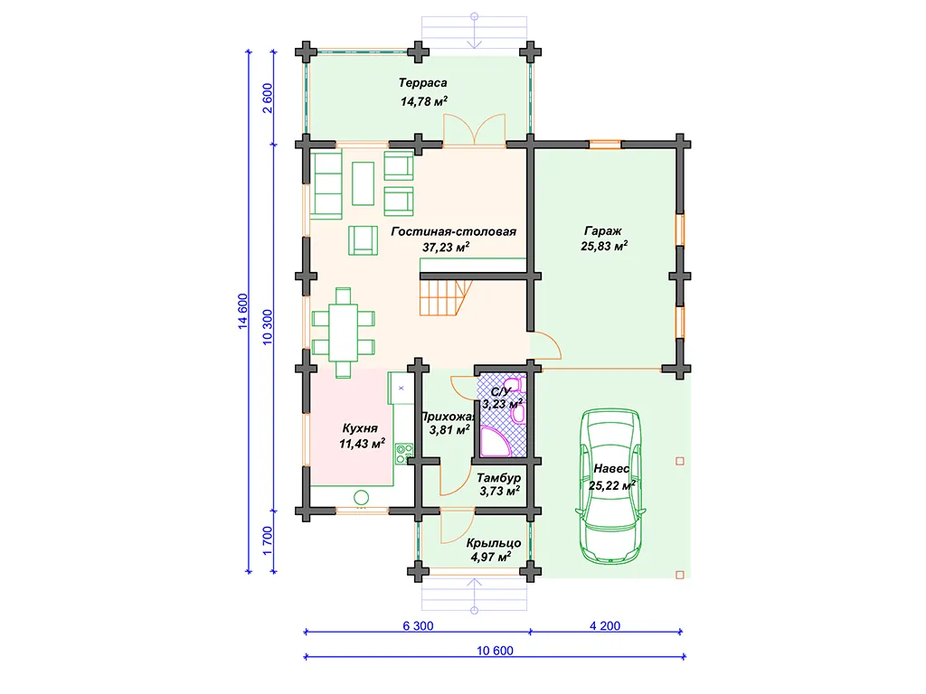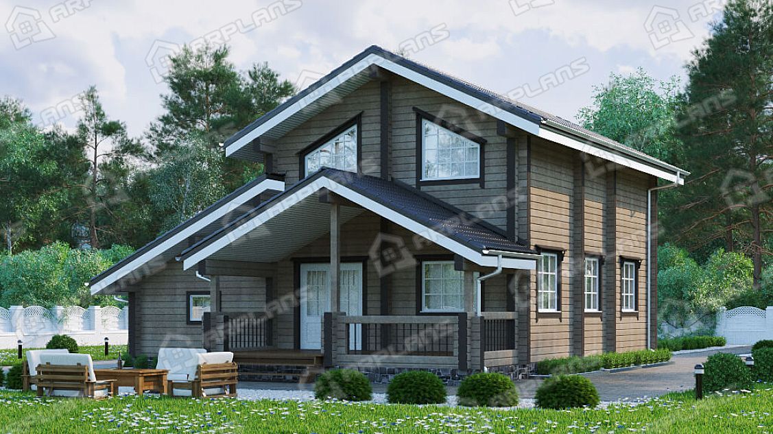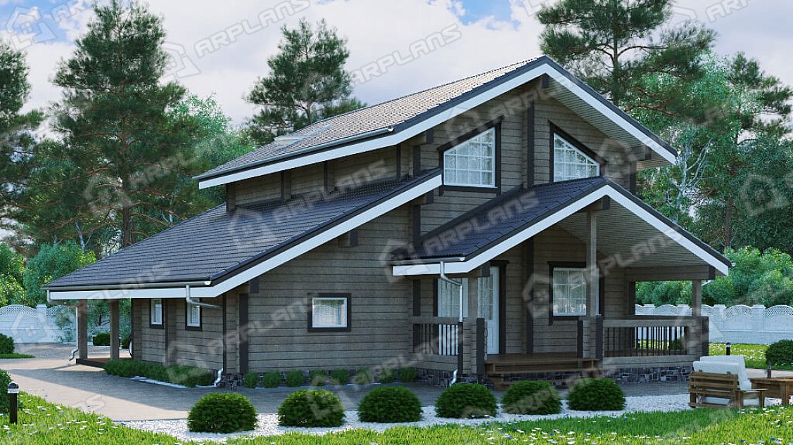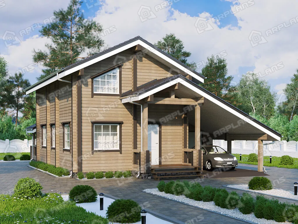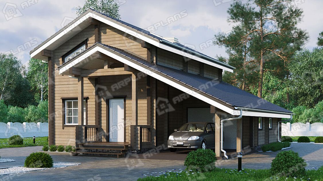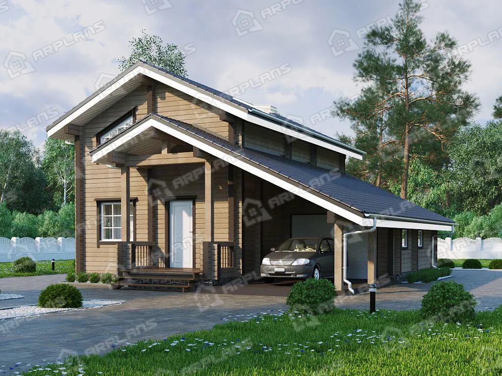 Проект деревянного дома с 3 спальнями и навесом для машины S4-160 (ДС-163)