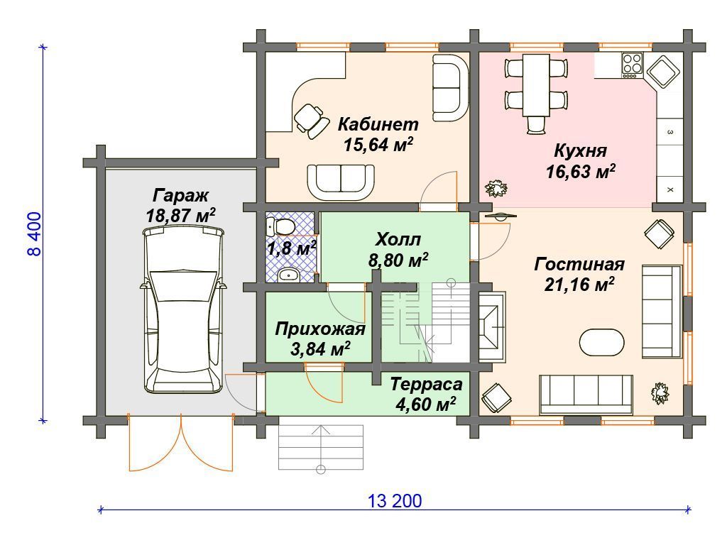 Проект деревянного дома с гаражом S4-160 (ДО-086)