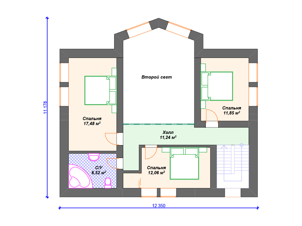 Проект мансардного дома со вторым светом, 3 спальнями и эркером S4-163 (К-057)