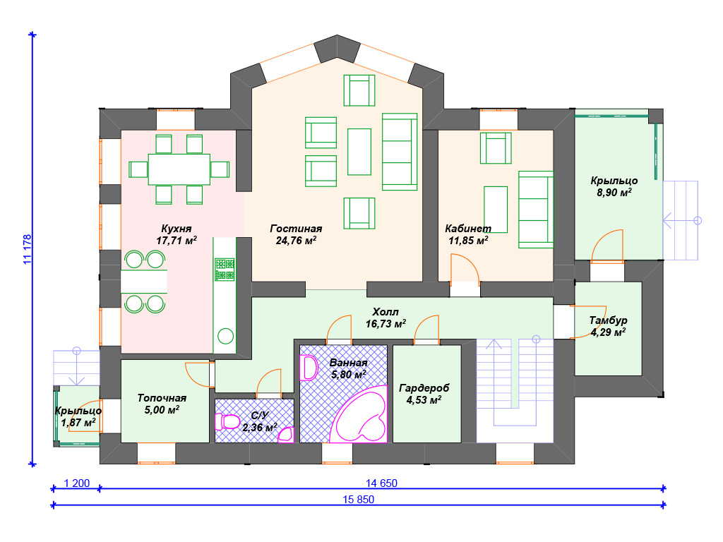 | Возможный материал кровли | металлочерепица, гибкая черепица, керамическая черепица, композитная черепица, цементно-песчаная черепица, фальцевая кровля |