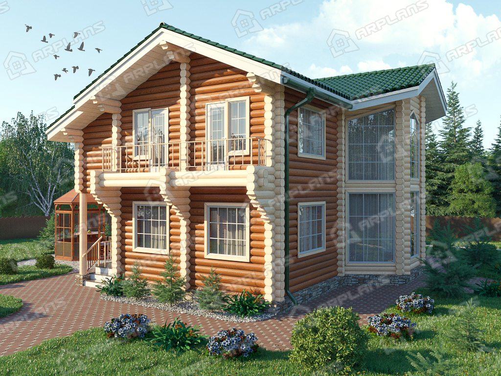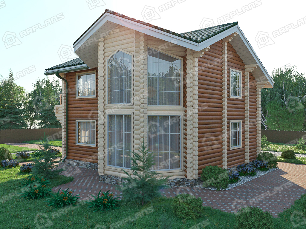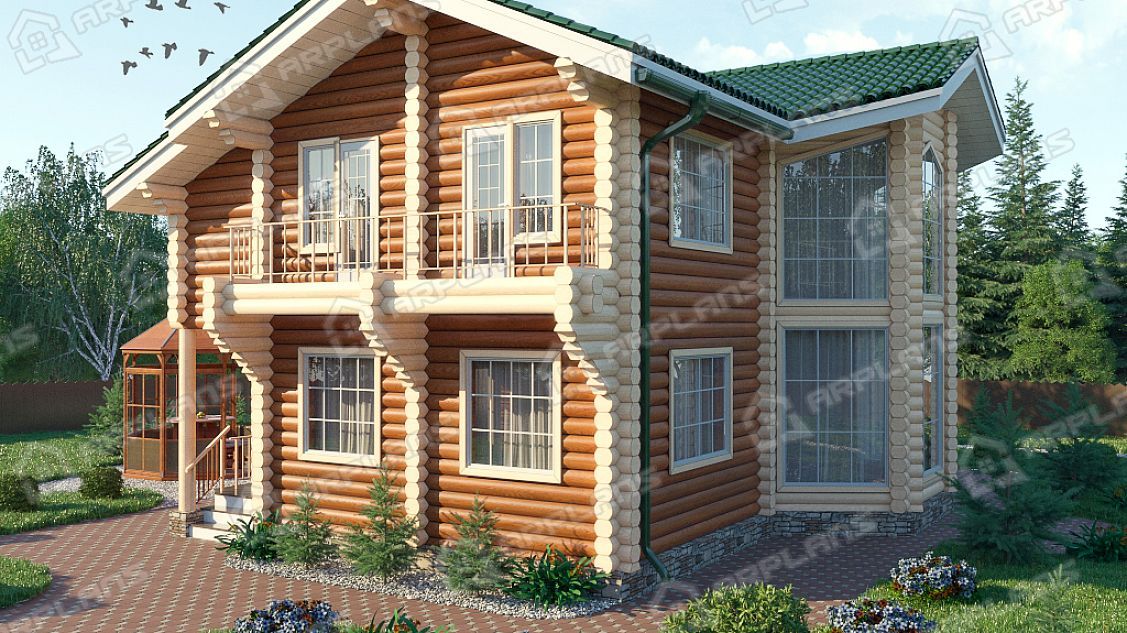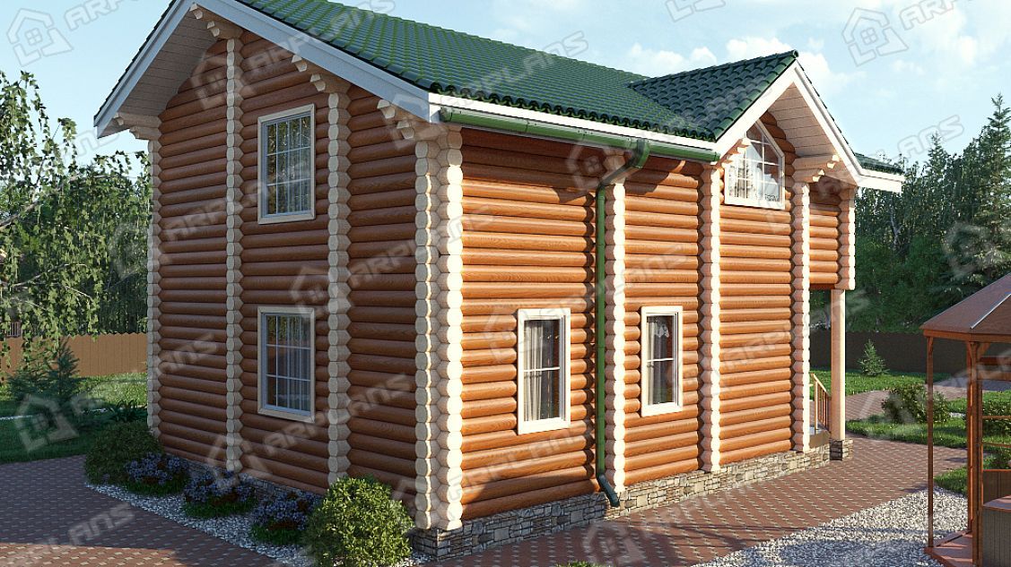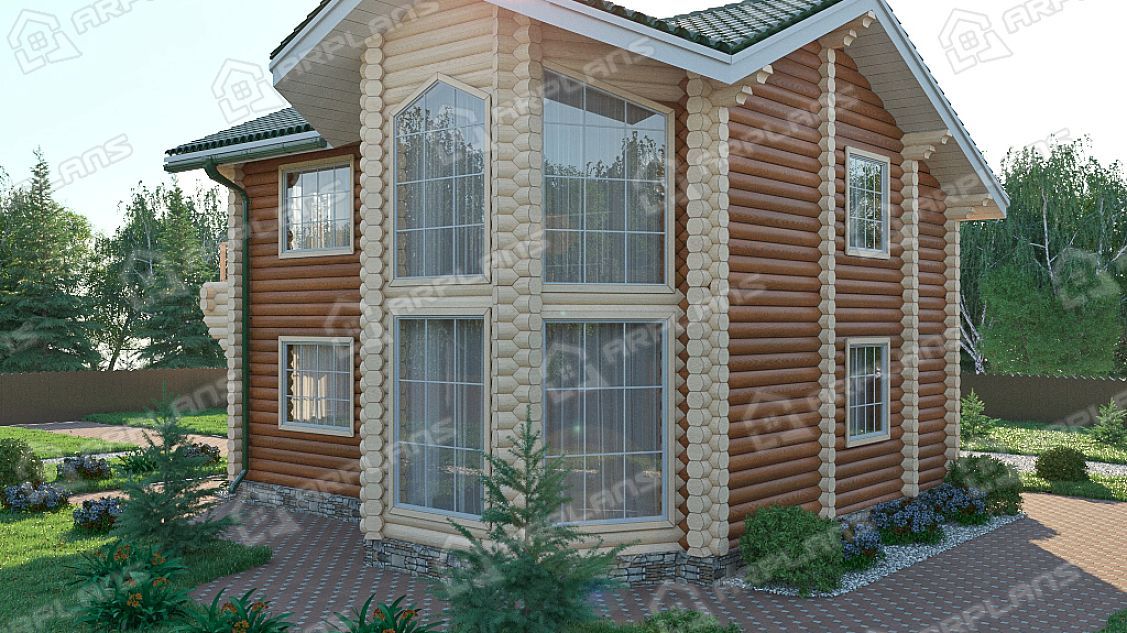 Проект деревянного дома из бревна 10 на 10 м с эркером и 3 спальнями S4-164 (ДО-015)