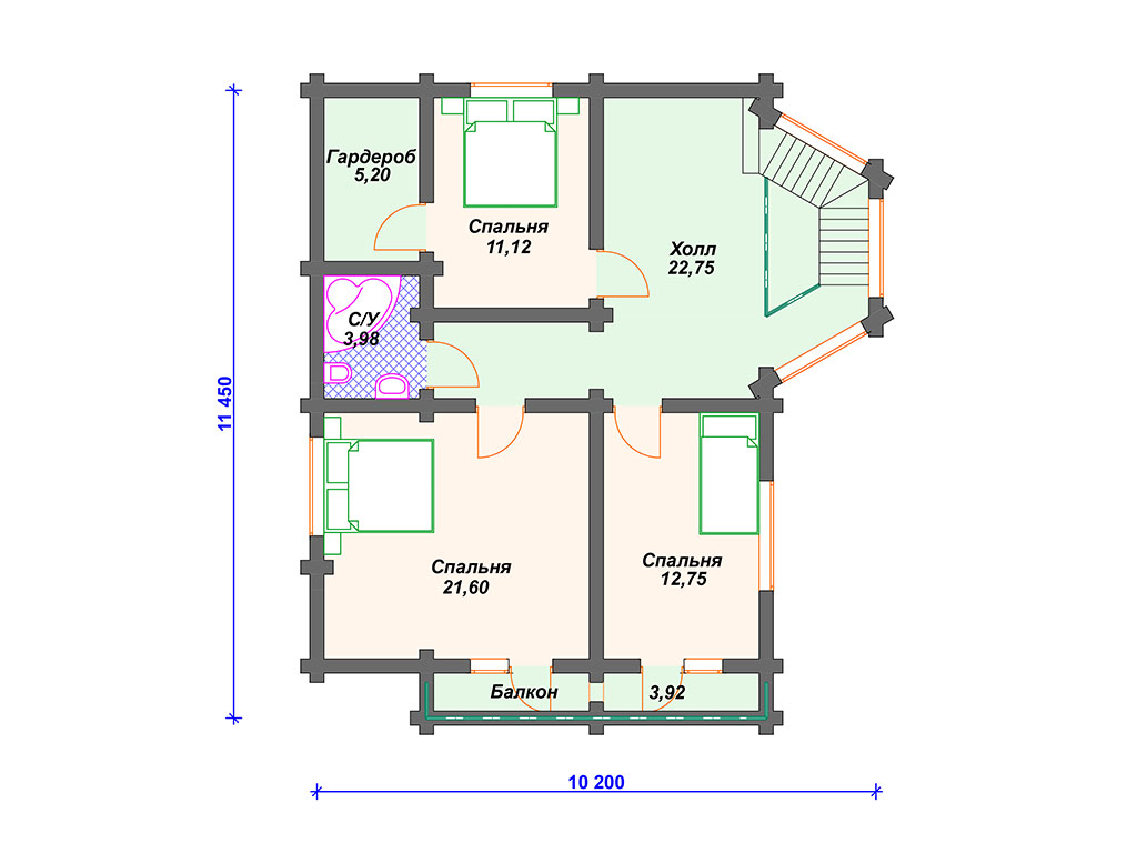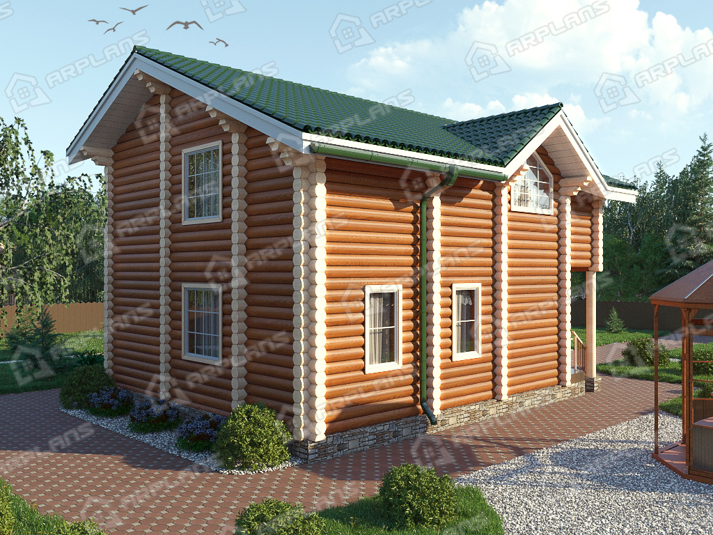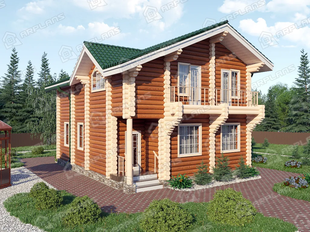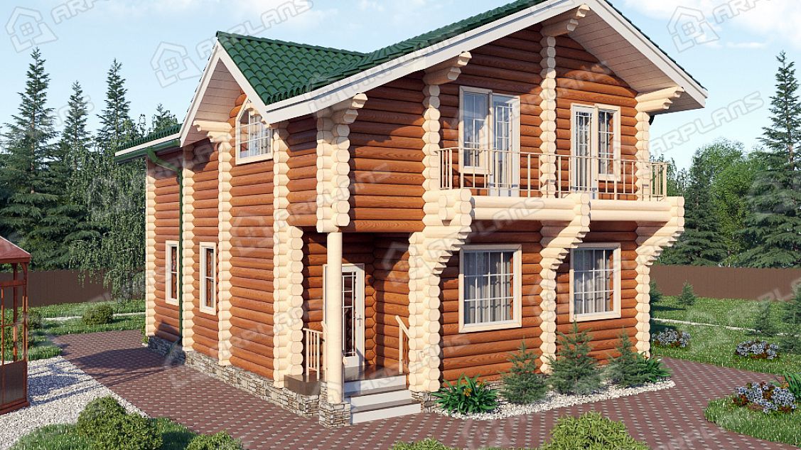 Проект деревянного дома из бревна 10 на 10 м с эркером и 3 спальнями S4-164 (ДО-015)