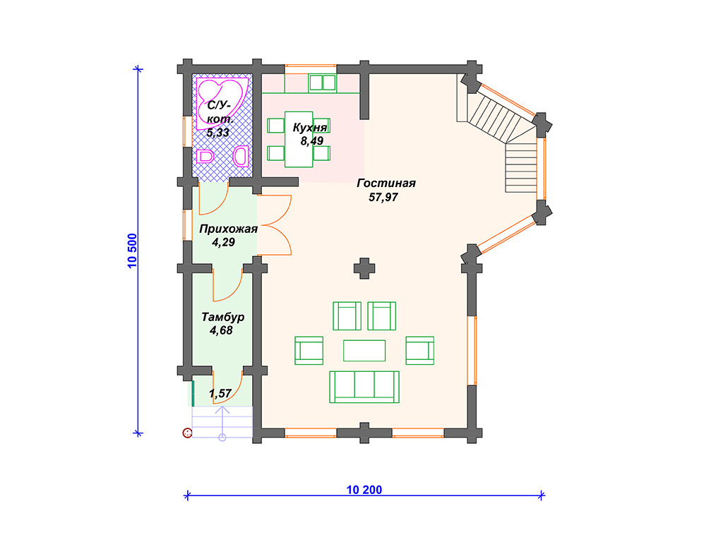 | Материал стен | оцилиндрованное бревно, профилированный брус, клееный брус |