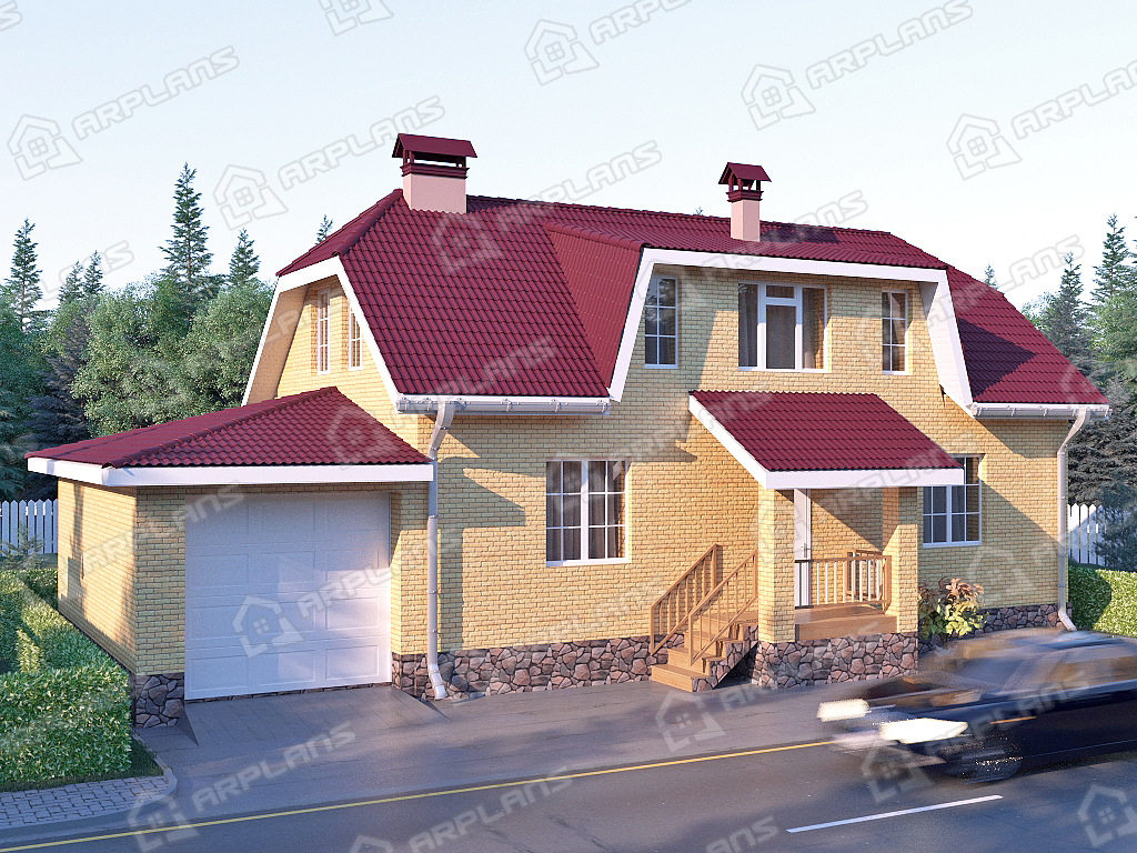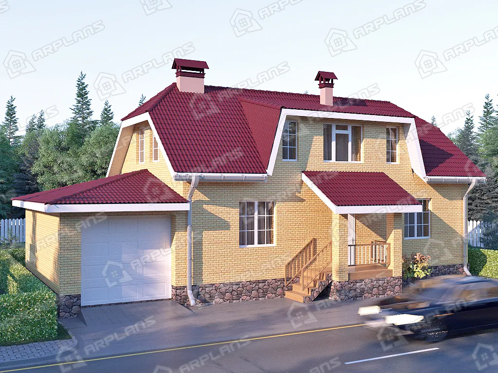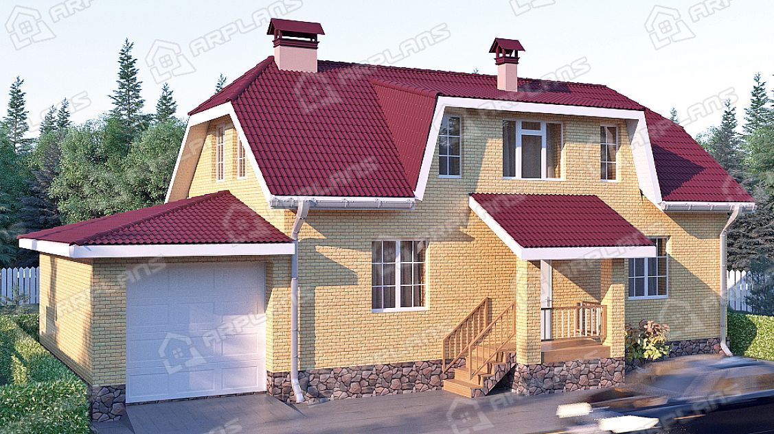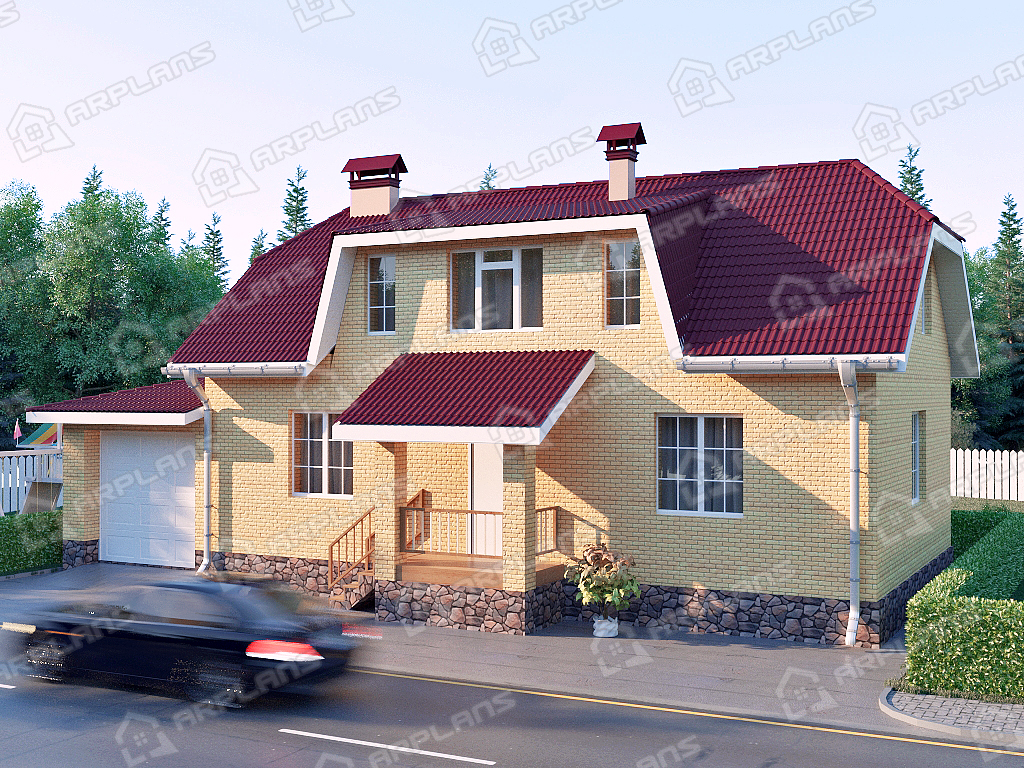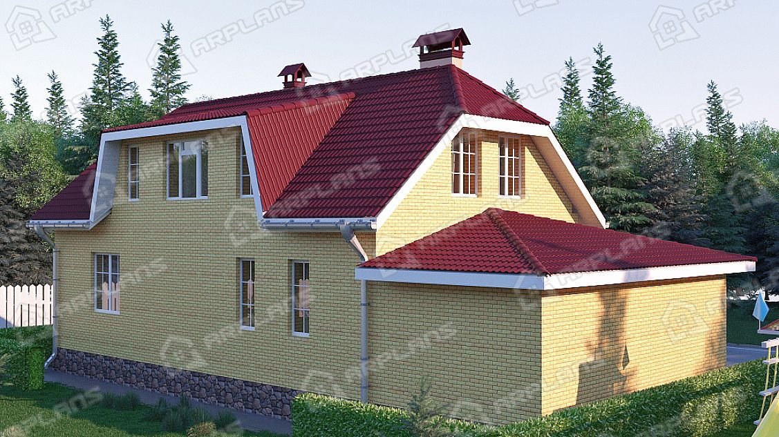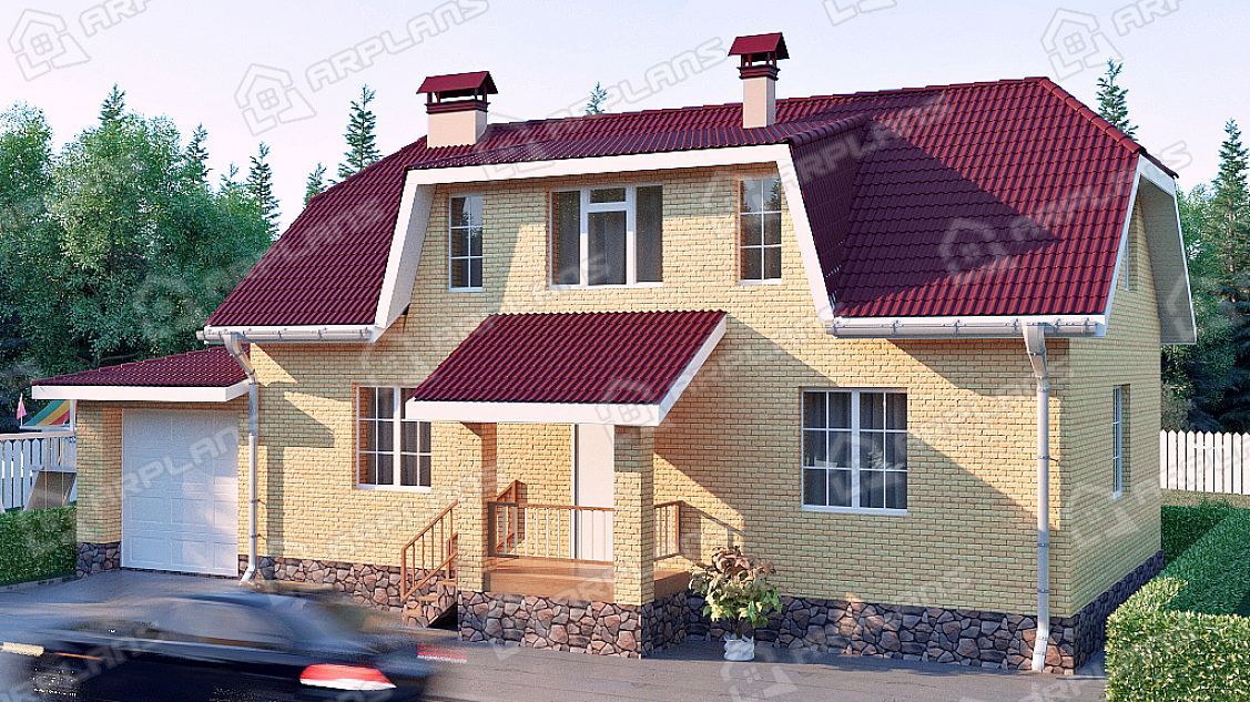 Проект каменного дома с гаражом и 3 спальнями S4-164 (К-109)