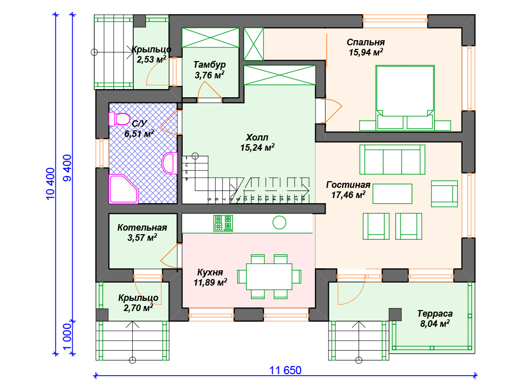 | Возможный материал кровли | металлочерепица, гибкая черепица, керамическая черепица, композитная черепица, цементно-песчаная черепица, фальцевая кровля |