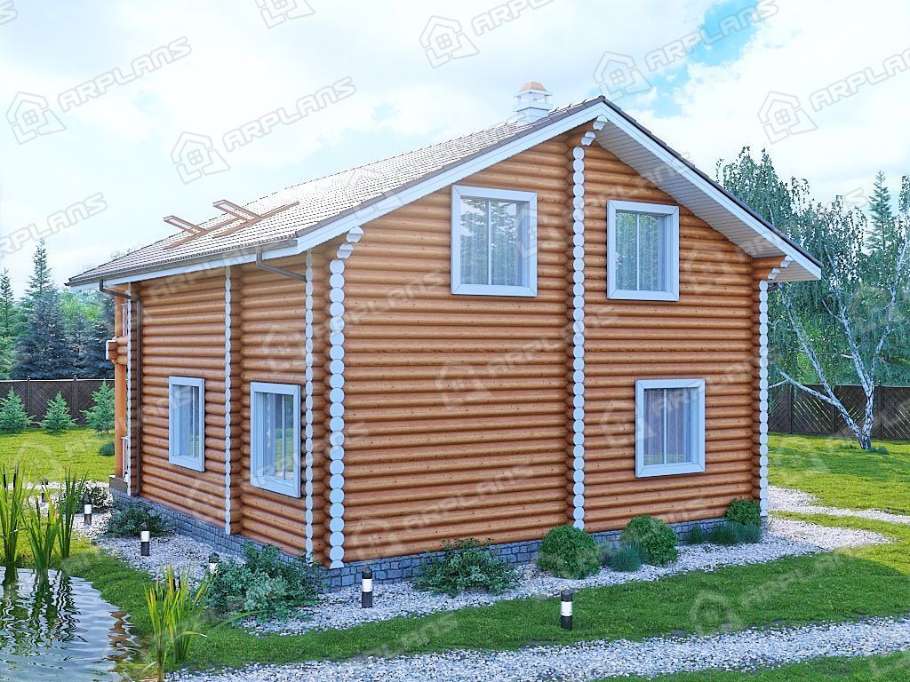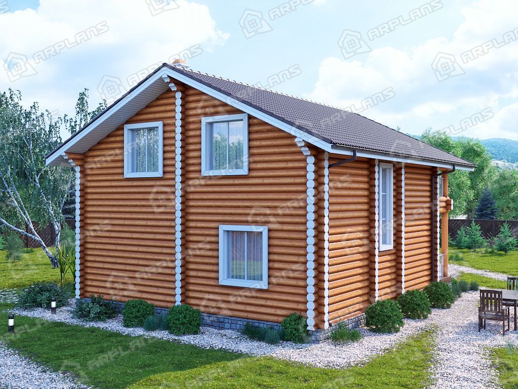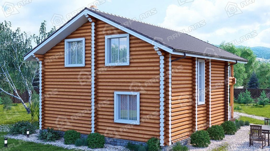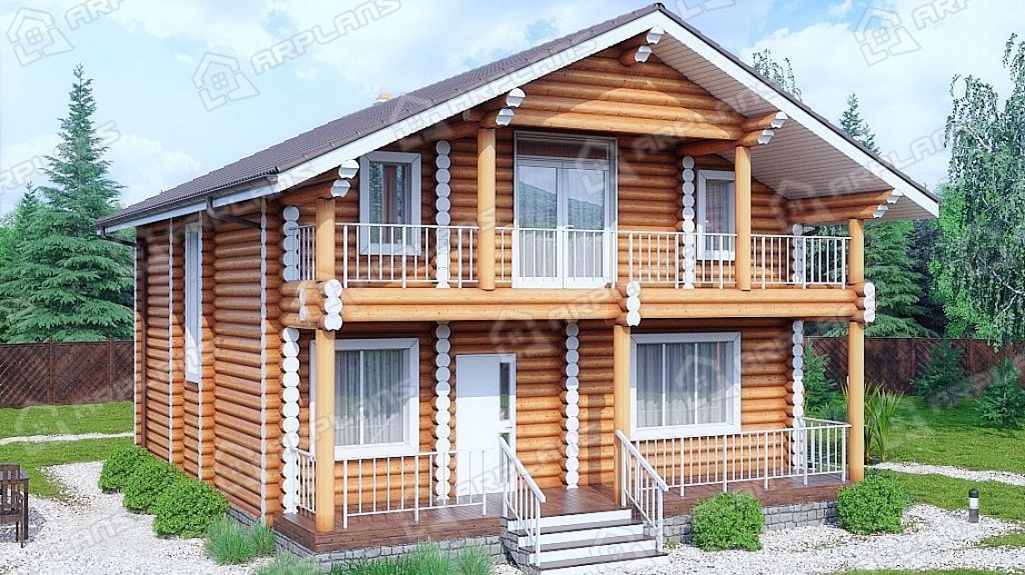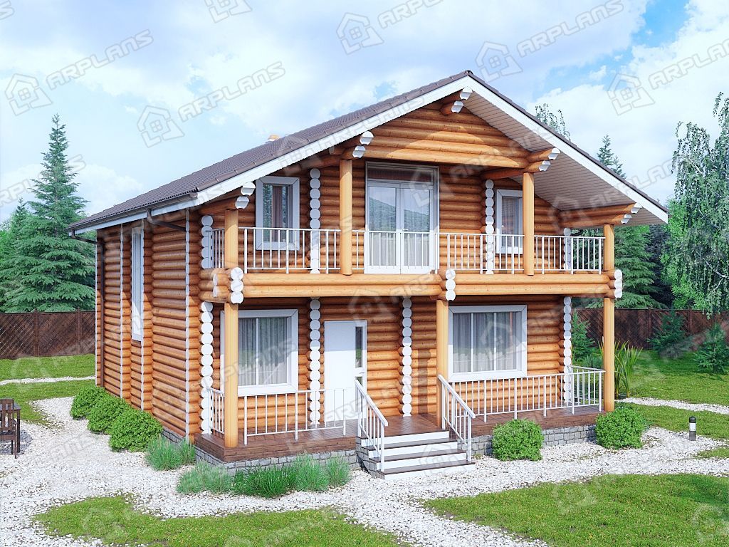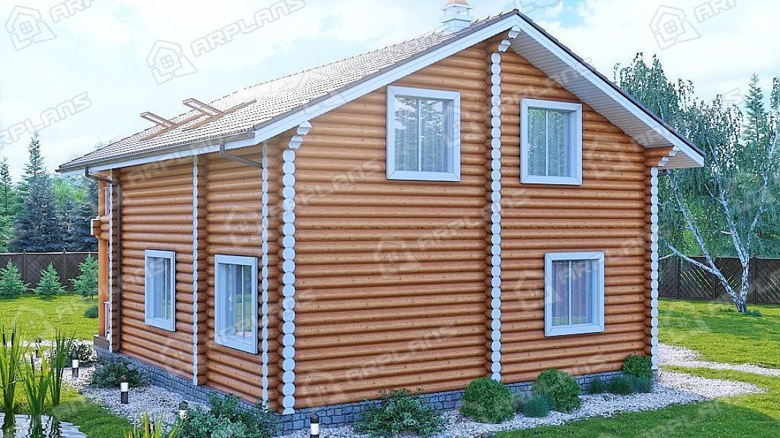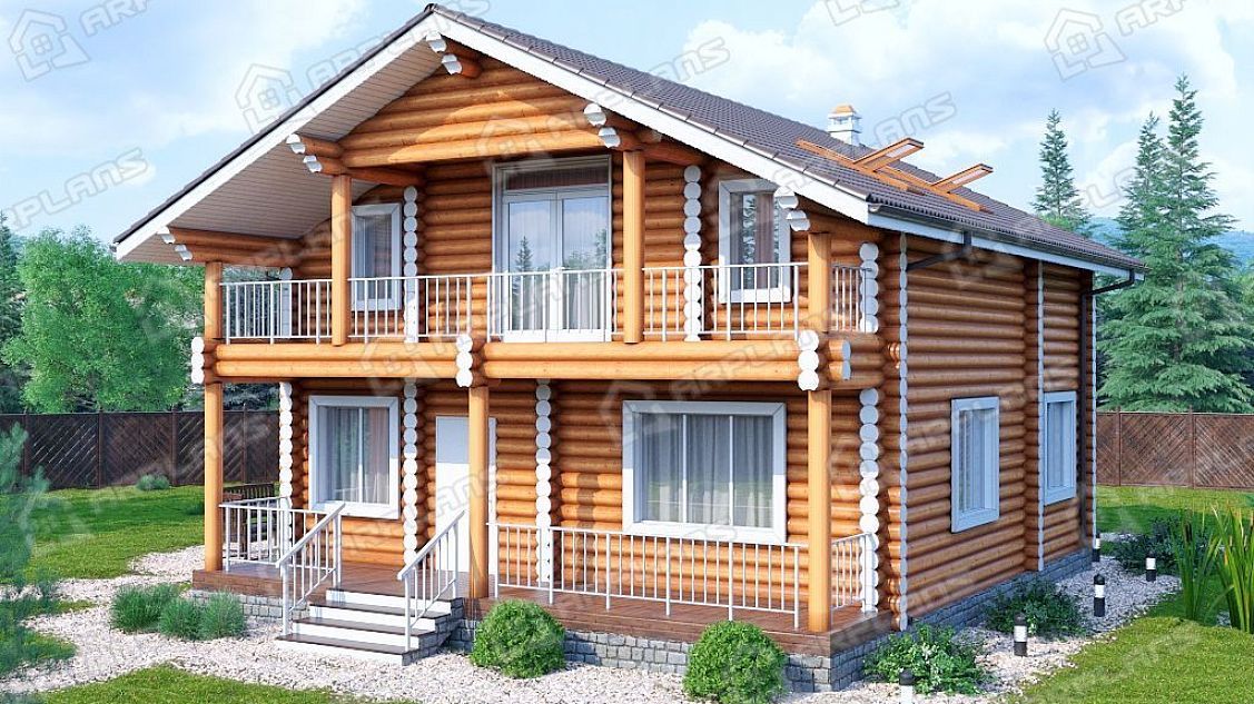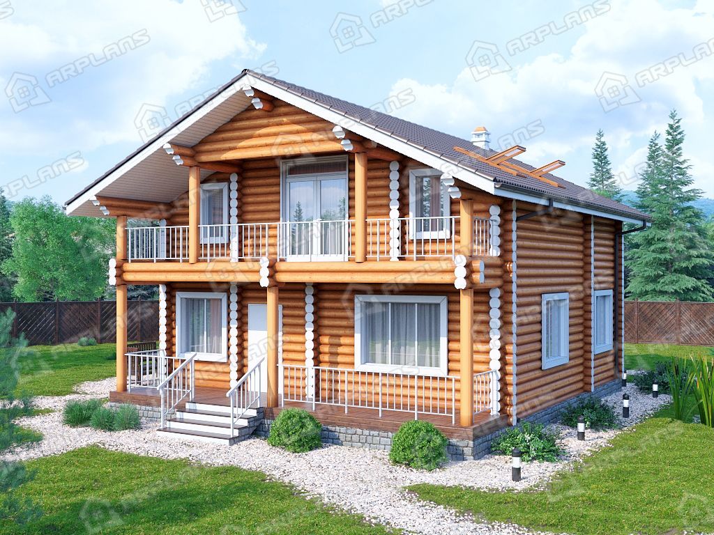 Проект деревянного дома из бревна 9 на 9 с 3 спальнями S4-165 (ДО-103)