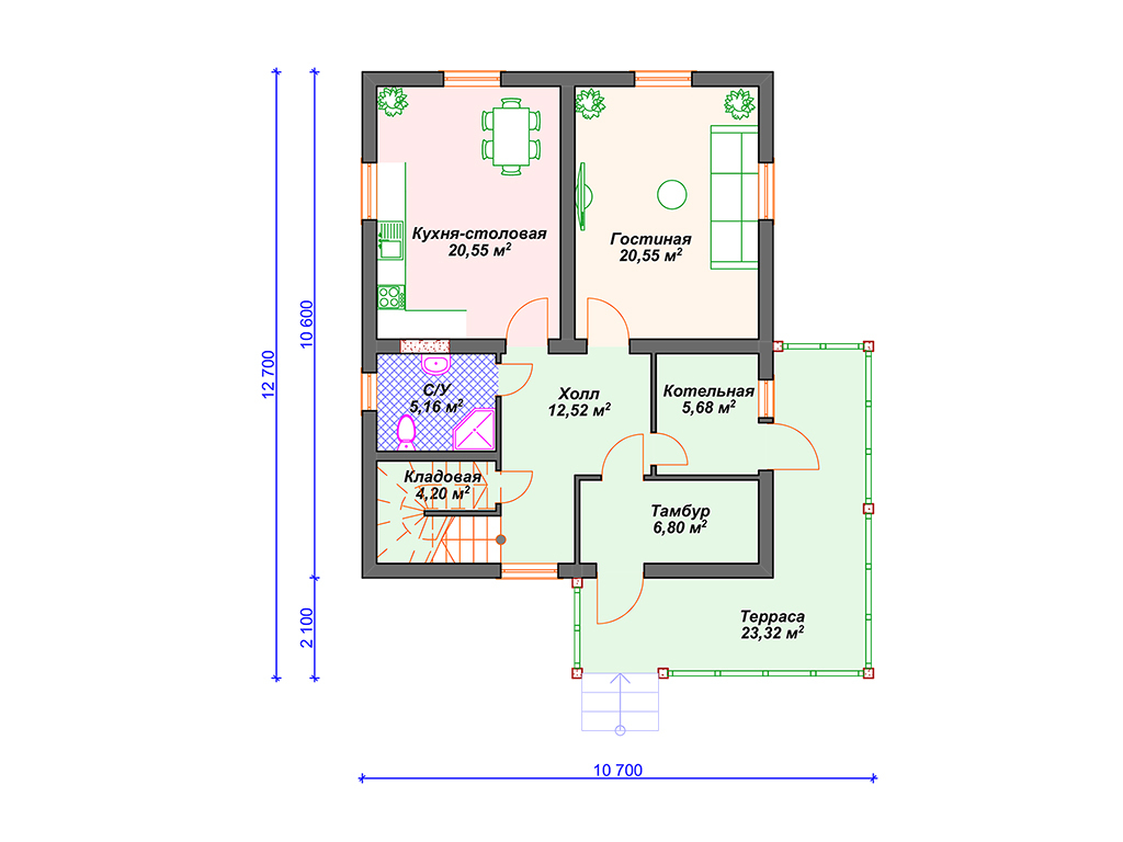 | Возможный материал кровли | металлочерепица, гибкая черепица, керамическая черепица, композитная черепица, цементно-песчаная черепица, фальцевая кровля |