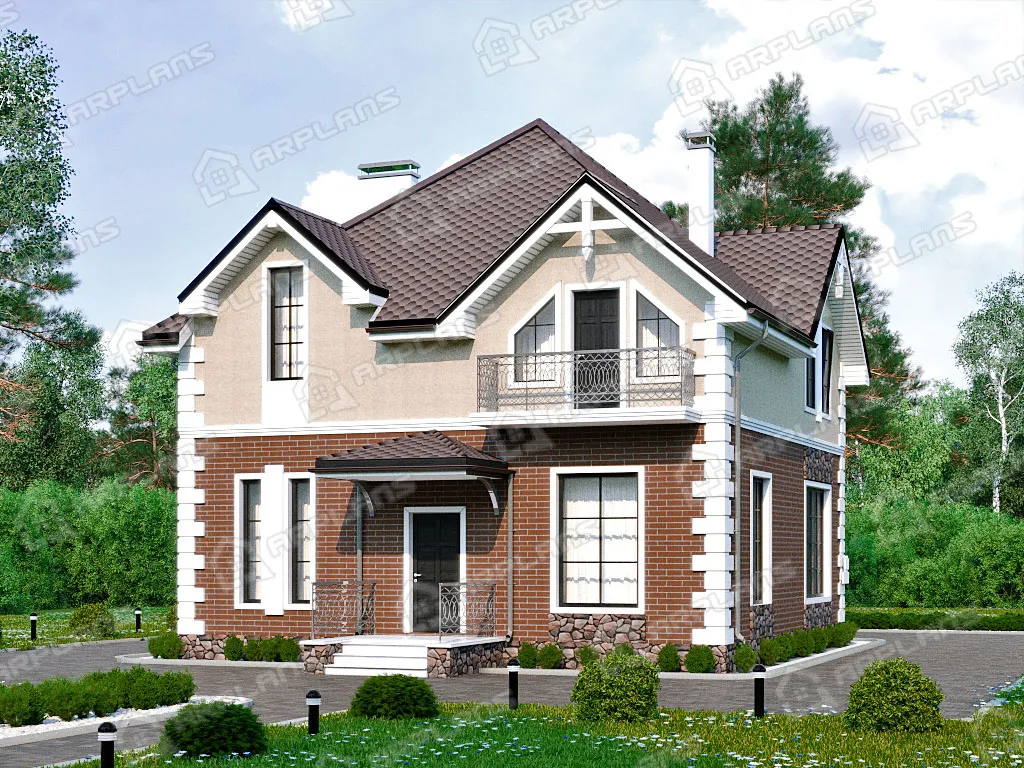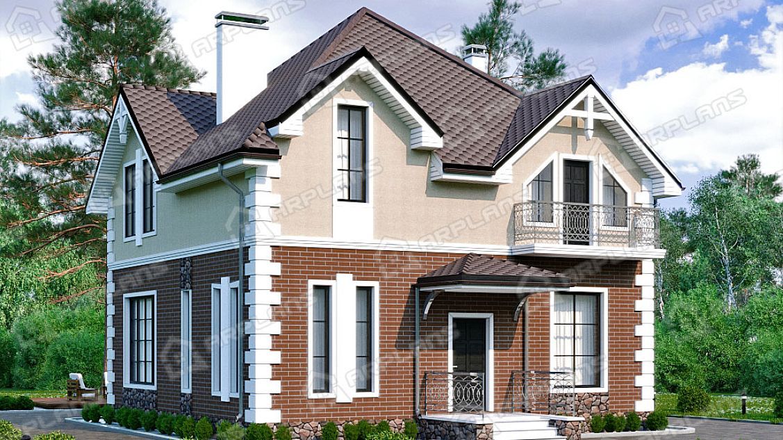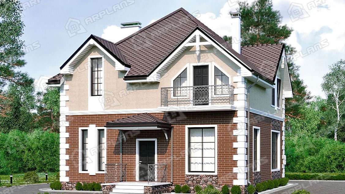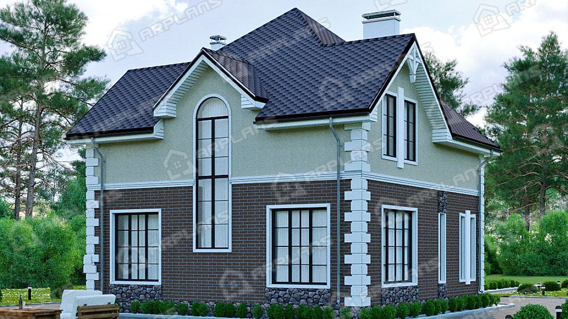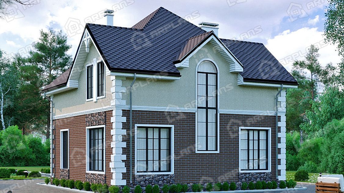 Проект каменного дома с мансардой и 3 спальнями S4-172 (К-222)