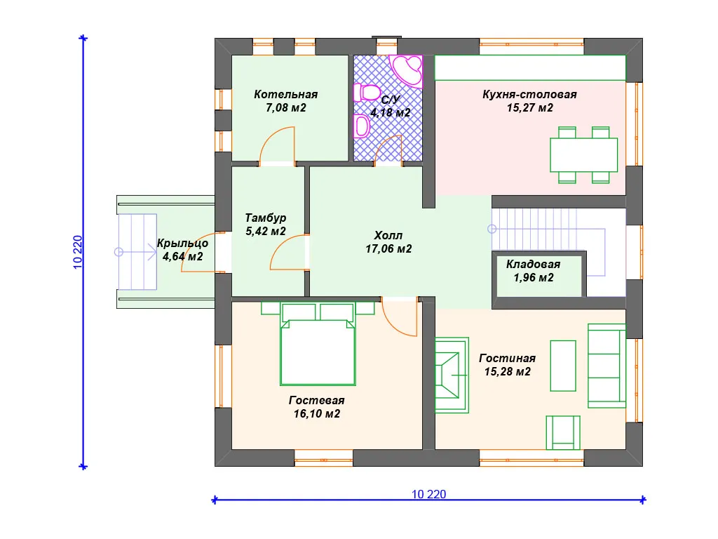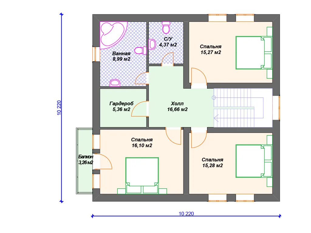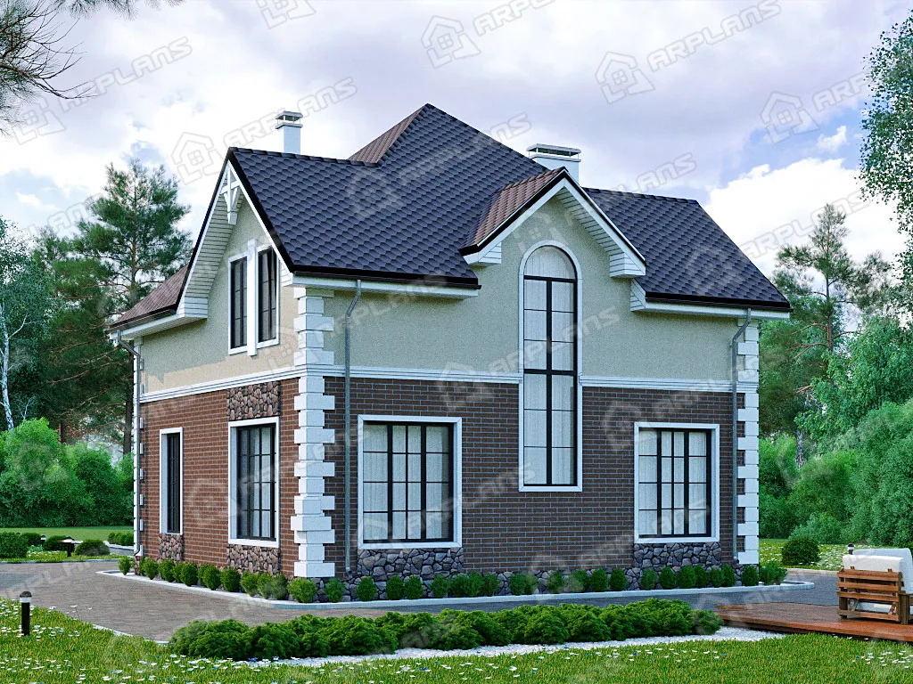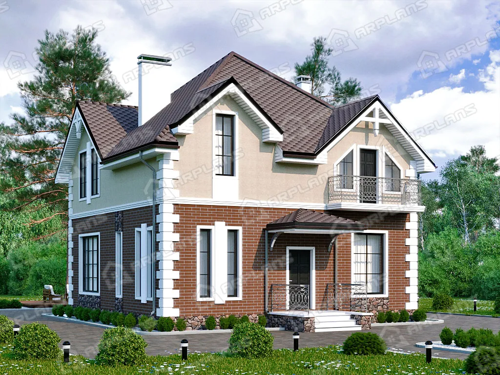 Проект каменного дома с мансардой и 3 спальнями S4-172 (К-222)
