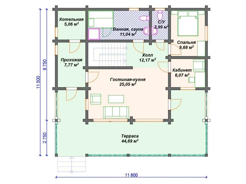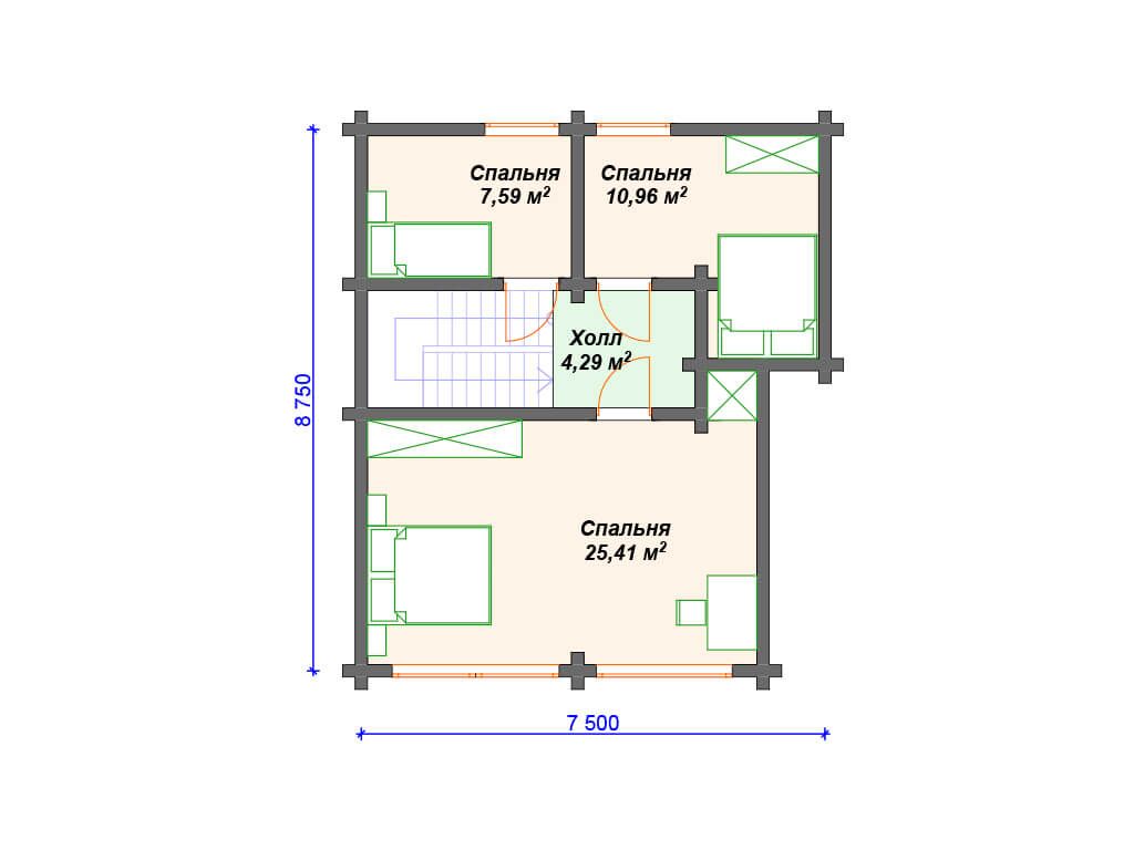 Проект деревянного дома из бревна S4-173 (ДО-148)