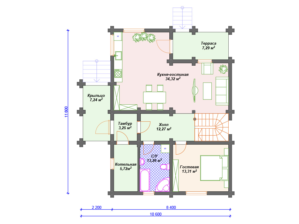 | Материал стен | оцилиндрованное бревно, профилированный брус, клееный брус |