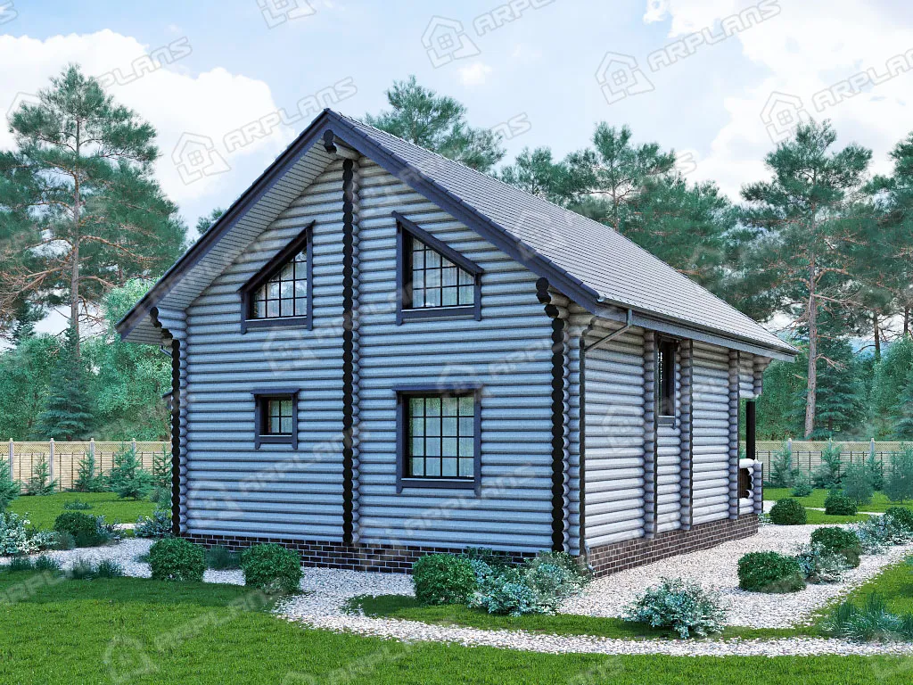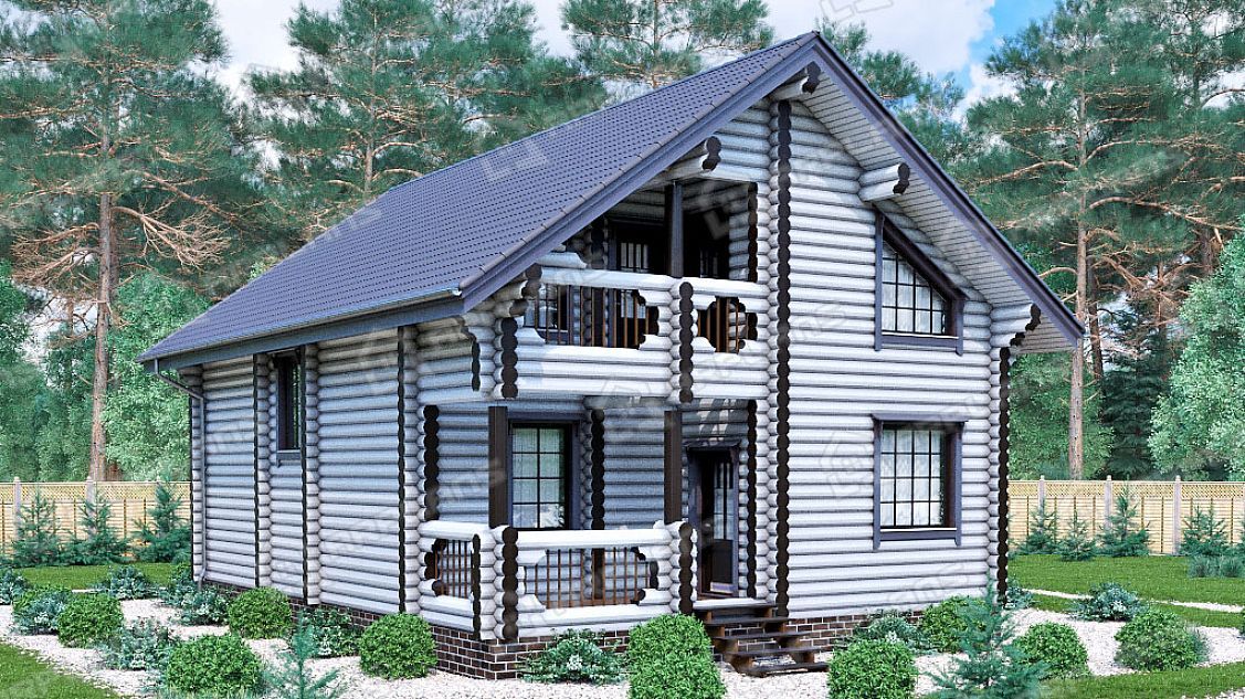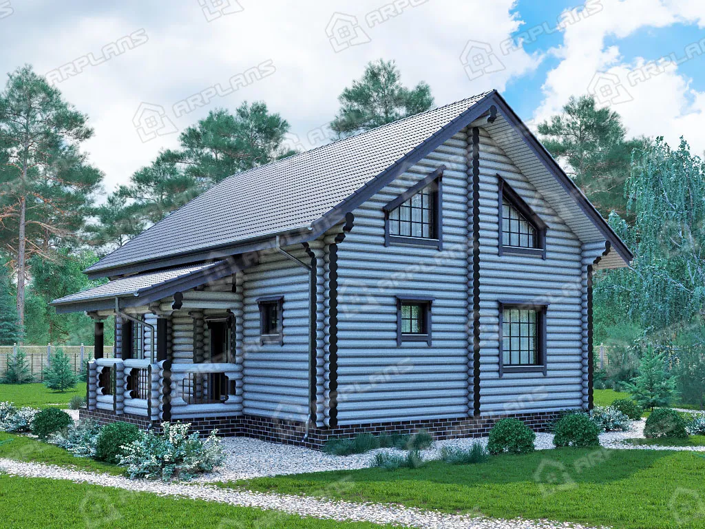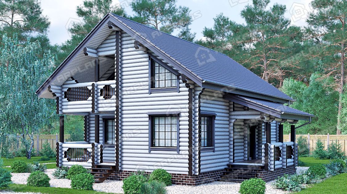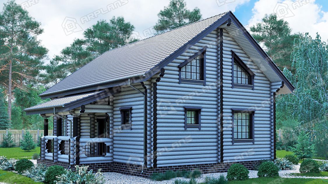 Проект деревянного дома из бревна 8 на 11 м с мансардой и террасой S4-176 (ДО-011)