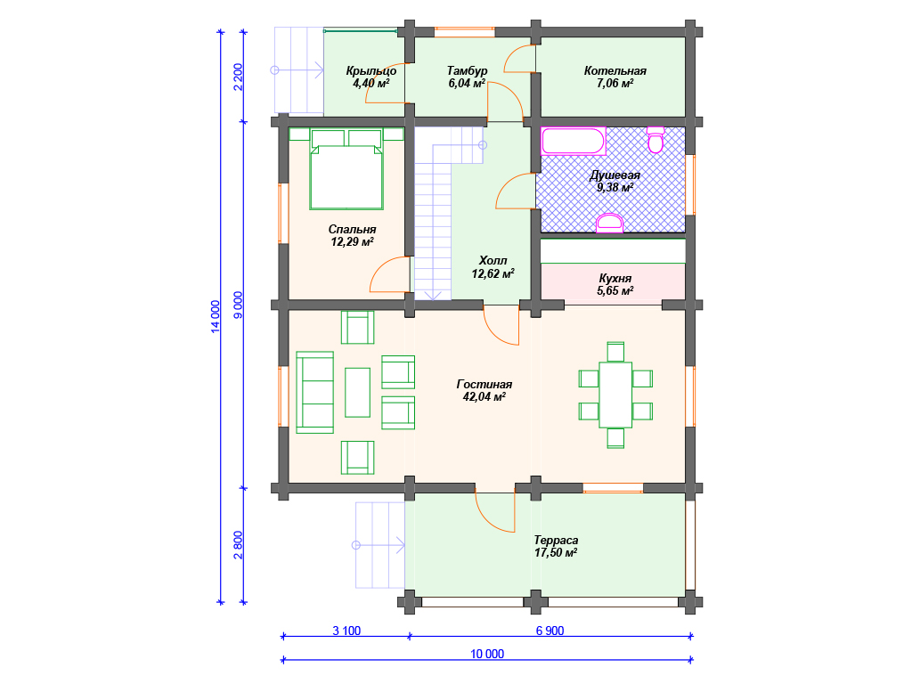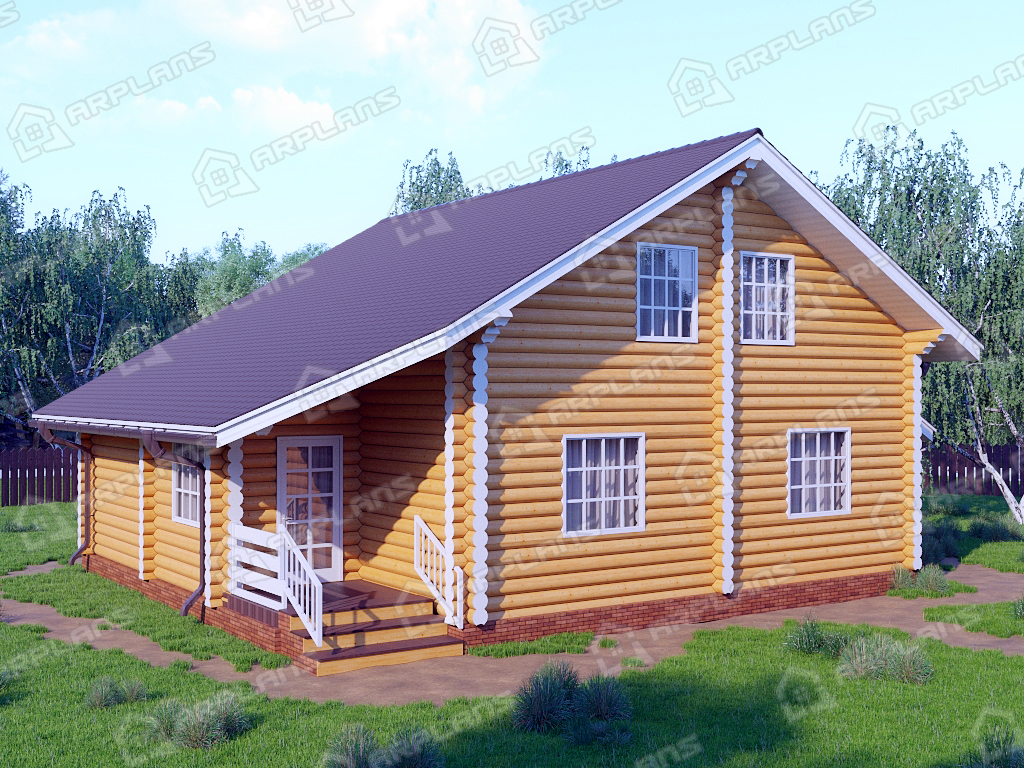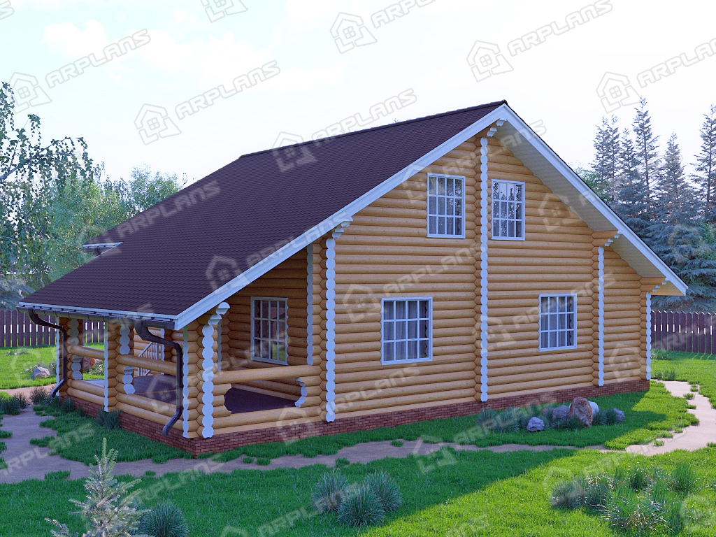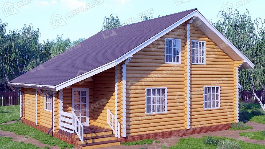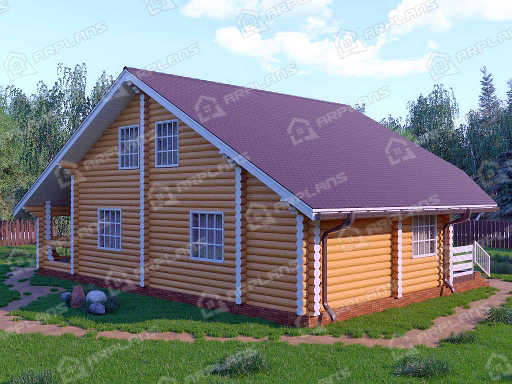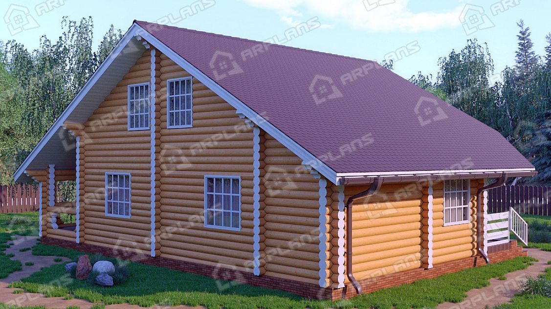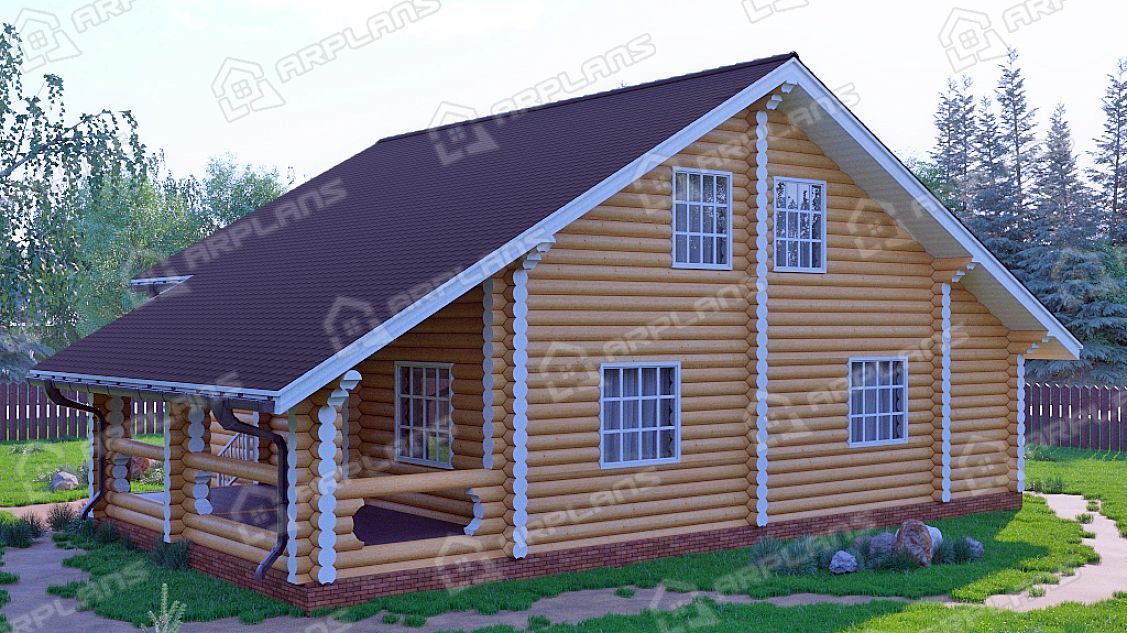 Проект деревянного дома из бревна 10 на 14 м с террасой и мансардой S4-176 (ДО-033)
