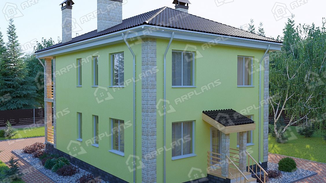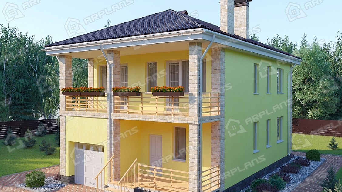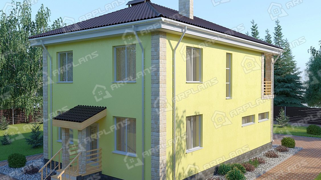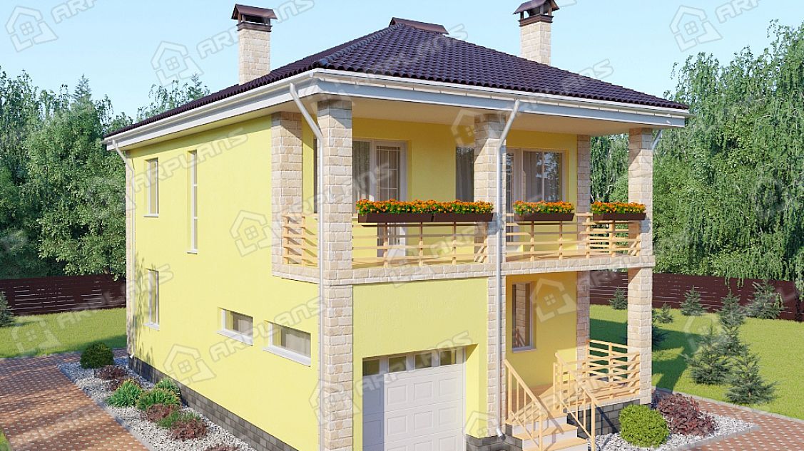 S4-178 (К-114) Дом общей площадью 178 кв м. Габариты дома - 8.60х13.70 м Дом прямоугольной формы, выполнен из газобетона, облицовка наружных стен- штукатурка. Строительство здания осуществляется на фундаменте - монолитная плита. Перекрытия 1 эт - по плите, 2 эт - ж/б плиты. Покрытие кровли - металлочерепица. Дом двухэтажный, с полноценным 2 этажом, накрыт четырёхскатной крышей (шатровая). Входим в дом с небольшой террасы 9 кв м, крышей которой служит перекрытие балкона. Заходим в тамбур, откуда сразу можно попасть в бойлерную. Бойлерная площадью почти 4 кв м, здесь можно установить электрический котел или использовать как кладовую. Из тамбура проходим в узкий холл 8 кв м, из которого сразу при входе справа гардеробная 3.6 кв м, с левой стороны предусмотрен вход в гараж, площадью 18 кв м. В гараже есть окна для естественного освещения и проветривания помещения. В конце холла расположена гостиная 25 кв м и кухня 13 кв м. Из гостиной можно выйти на задний двор дома. Поднимаемся на второй этаж по п-образной лестнице и проходим в холл 9.7 кв м. На этаже четыре спальни: две 12 кв м ( с выходом на балкон) и две по 16 кв м. Для удобства на этаже два раздельных помещения: с/у с раковиной 3.7 кв м и ванная комната 3.7 кв м. Проект двухэтажного дома для узкого участка и круглогодичного проживания семьи из 4-5 человек.