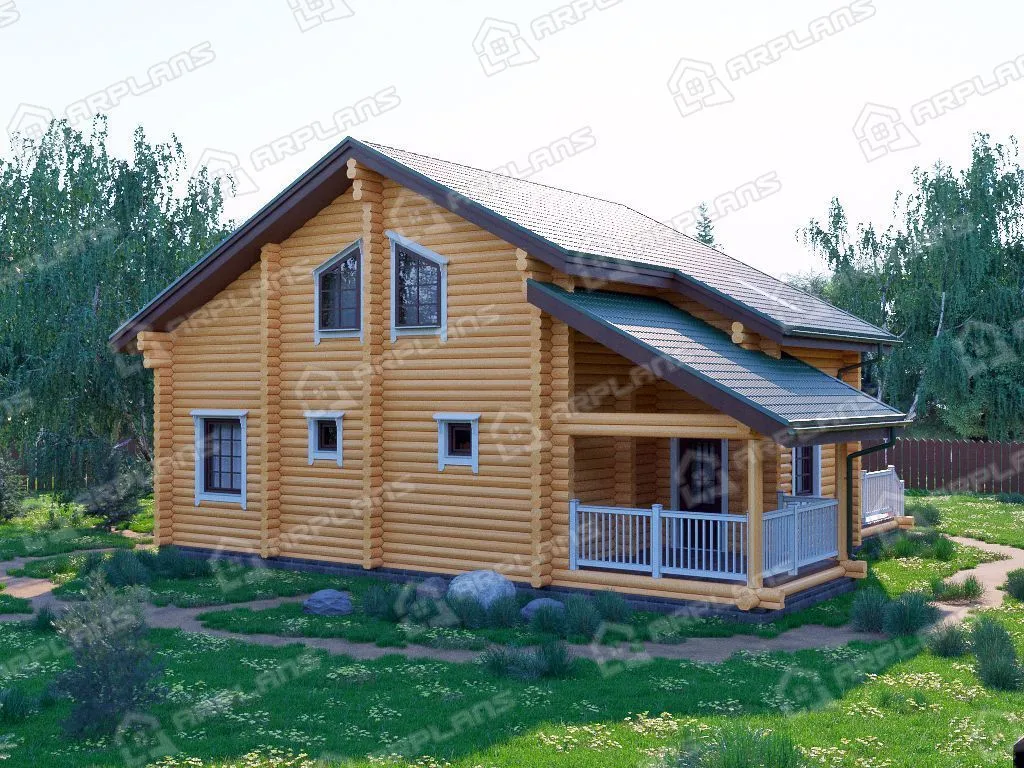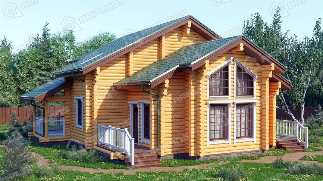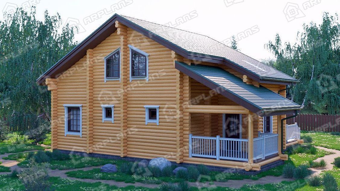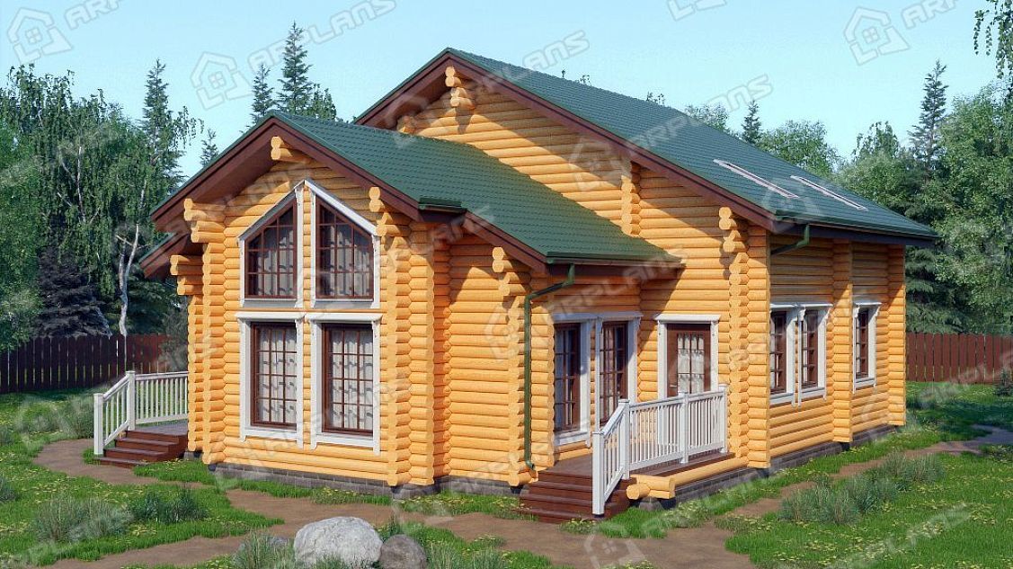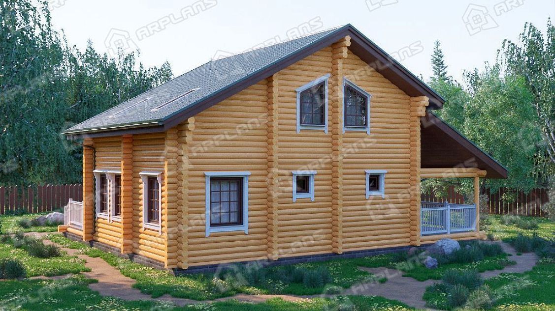 Проект деревянного дома из бревна 12 на 12 м с 3 спальнями и сауной S4-181 (ДО-087)