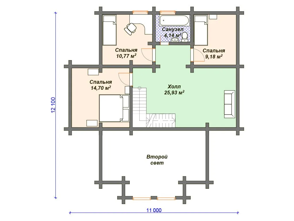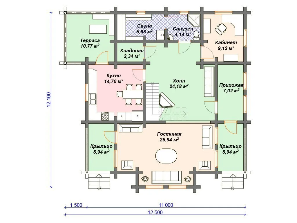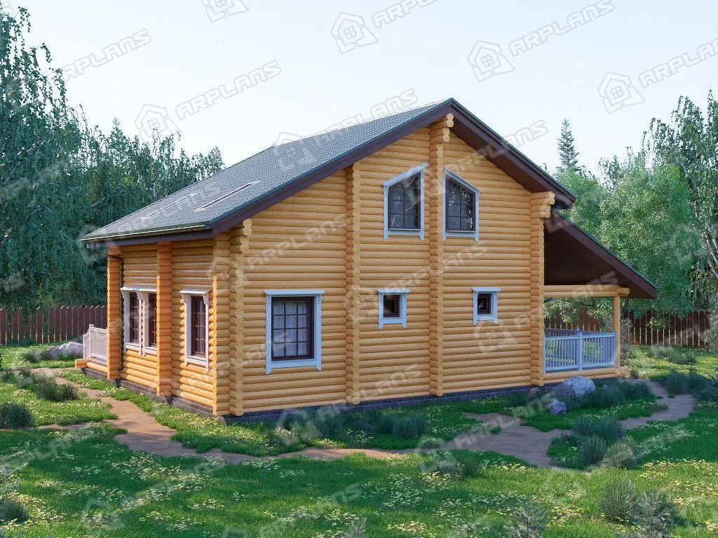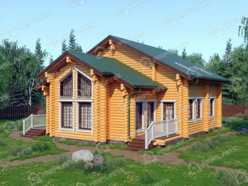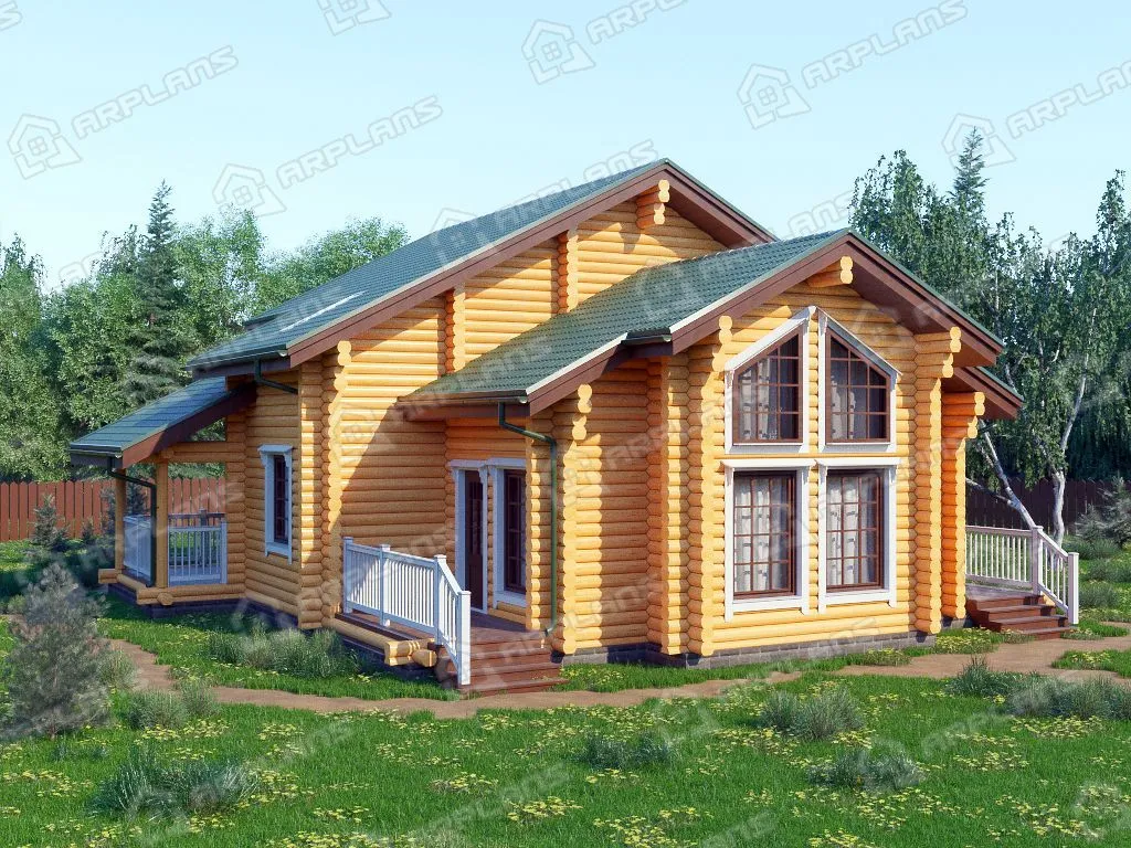 Проект деревянного дома из бревна 12 на 12 м с 3 спальнями и сауной S4-181 (ДО-087)