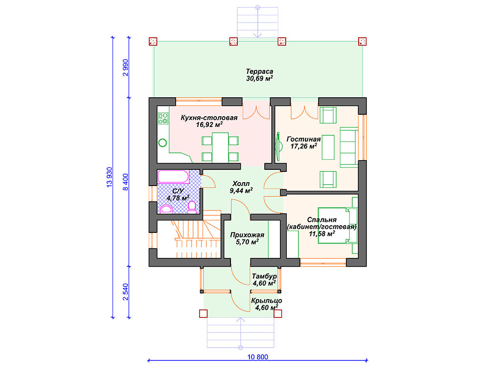 | Возможный материал кровли | металлочерепица, гибкая черепица, керамическая черепица, композитная черепица, цементно-песчаная черепица, фальцевая кровля |