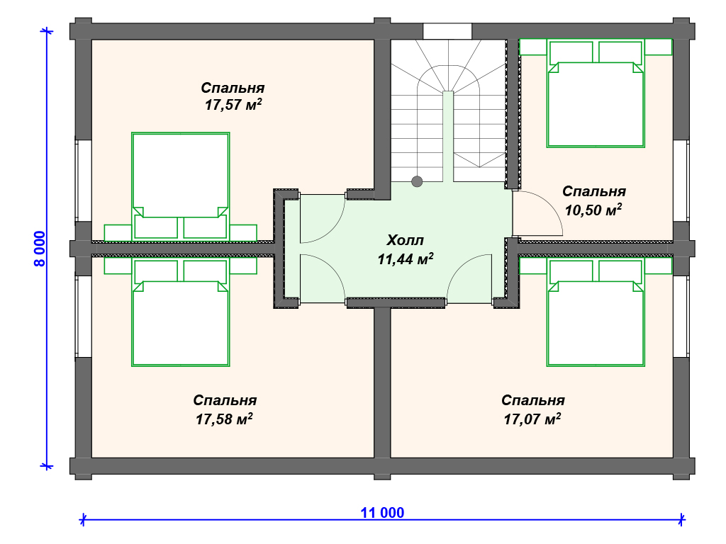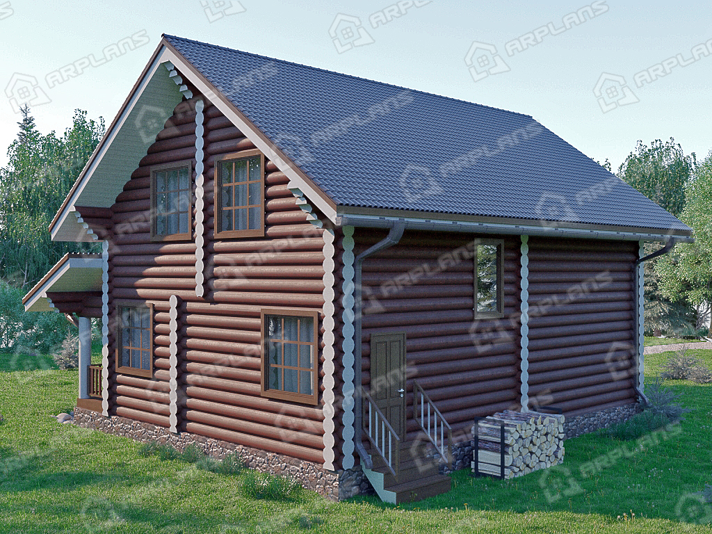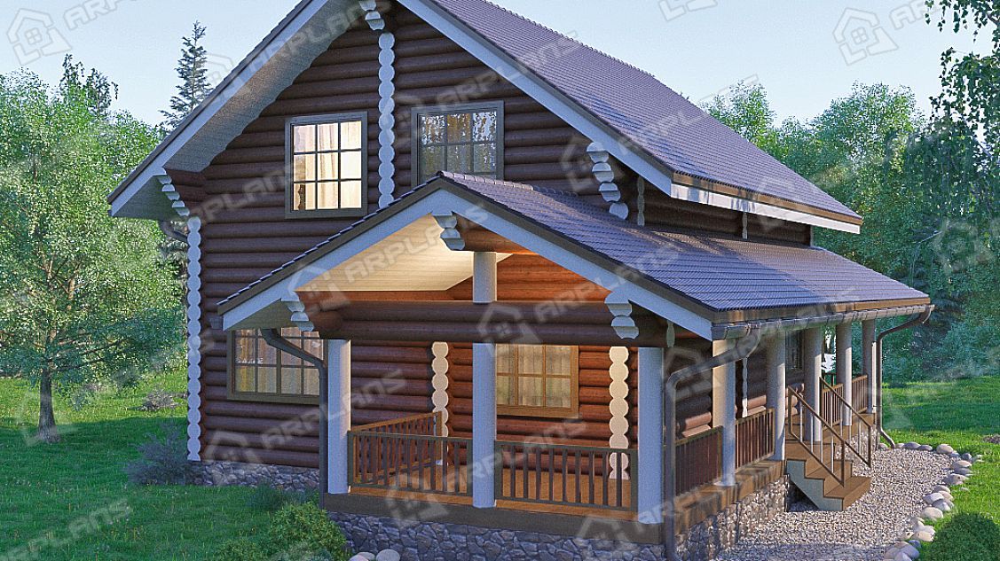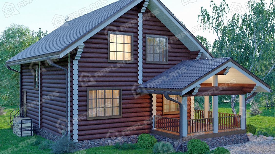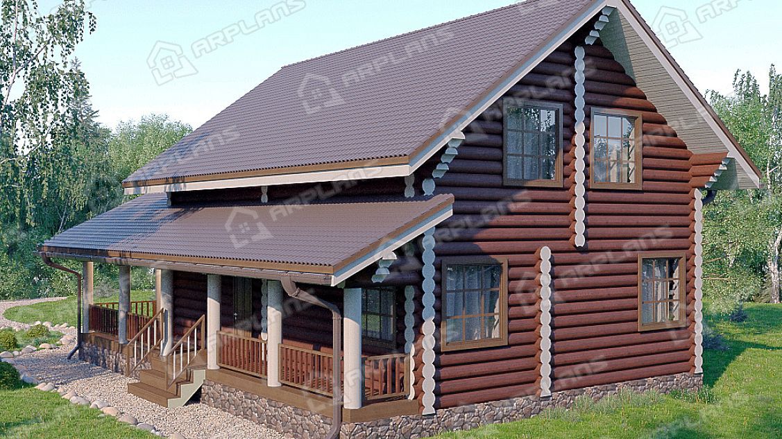 Проект деревянного дома из бревна 8 на 11 м с мансардой S4-183 (ДО-023)