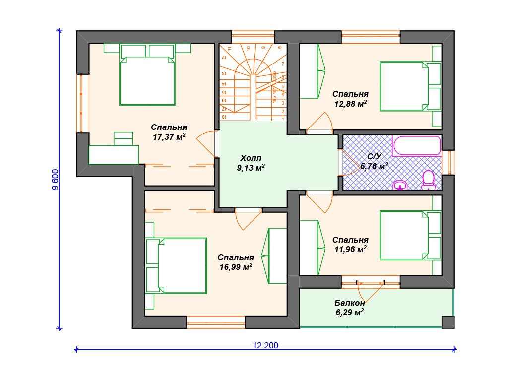 Проект каменного дома с мансардой S4-183 (К-196)