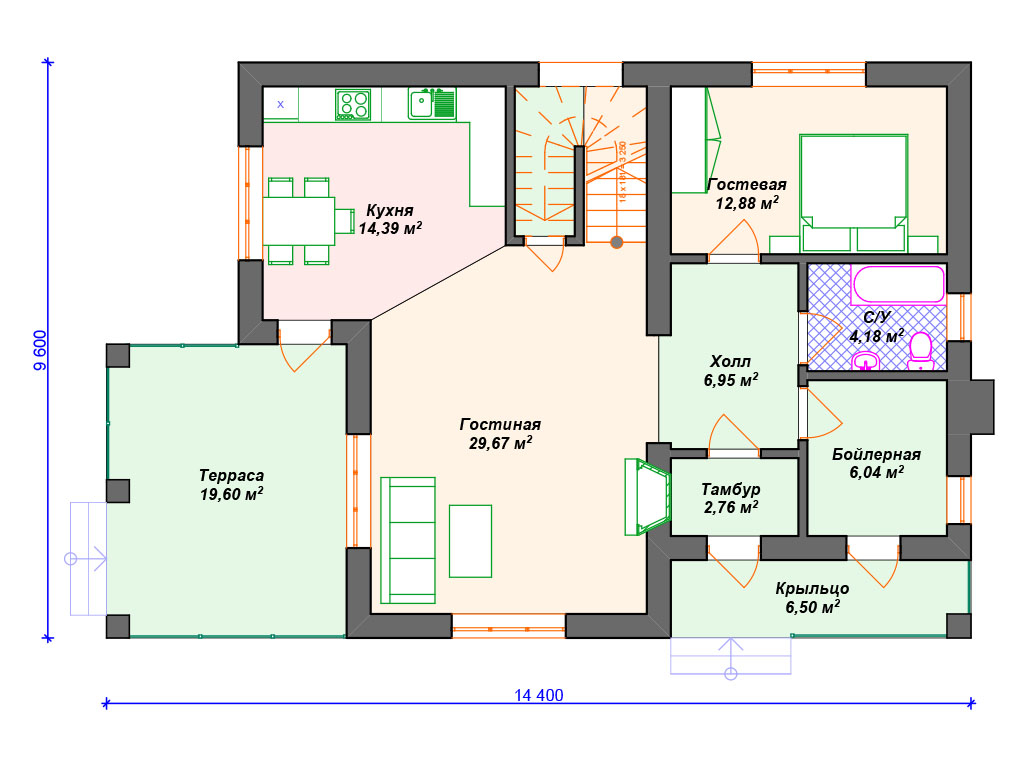| Возможный материал кровли | металлочерепица, гибкая черепица, керамическая черепица, композитная черепица, цементно-песчаная черепица, фальцевая кровля |