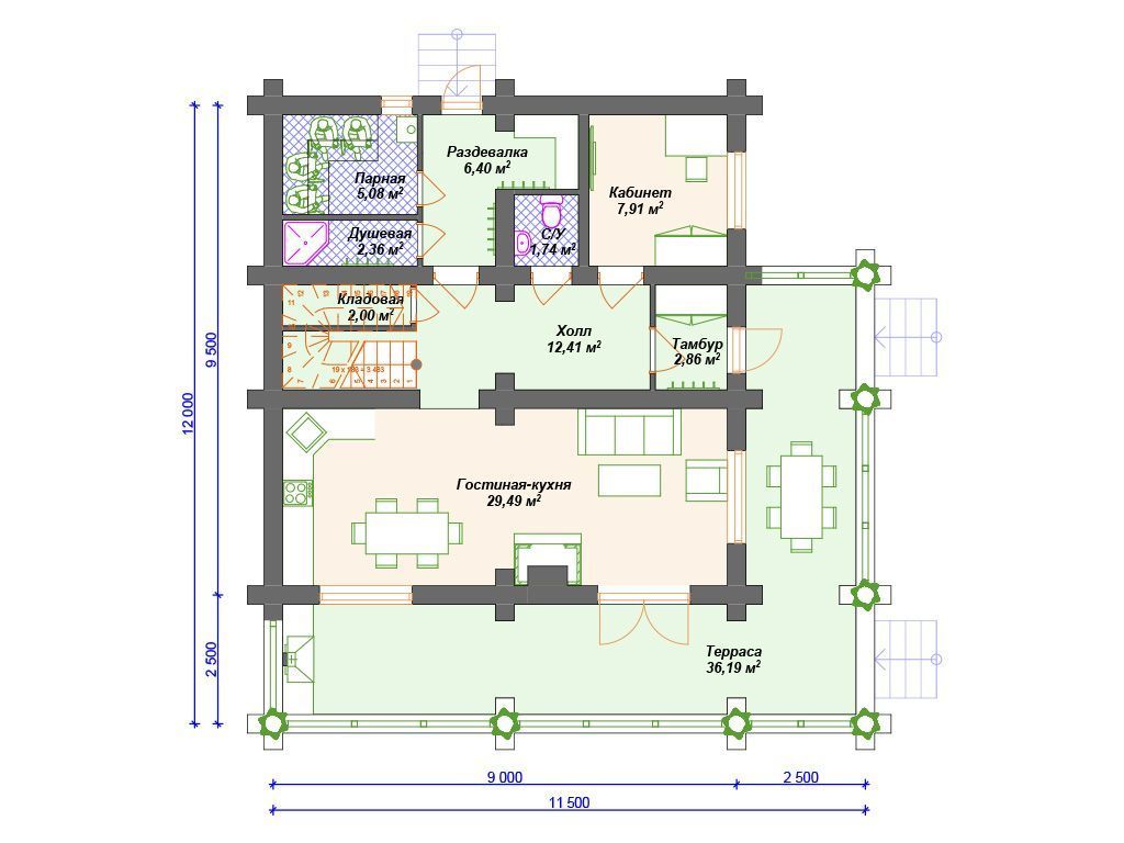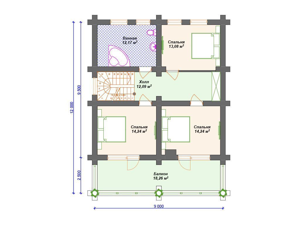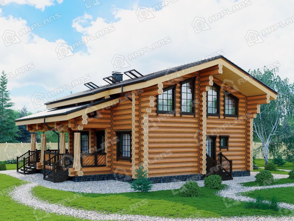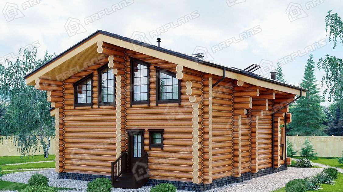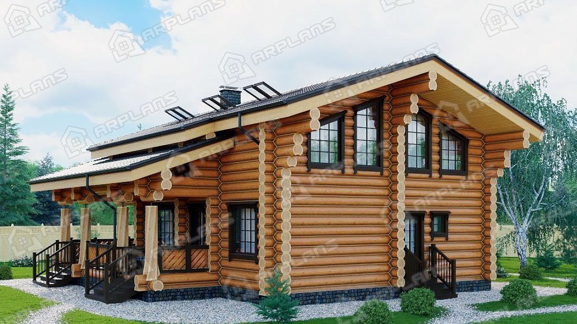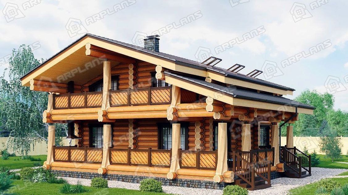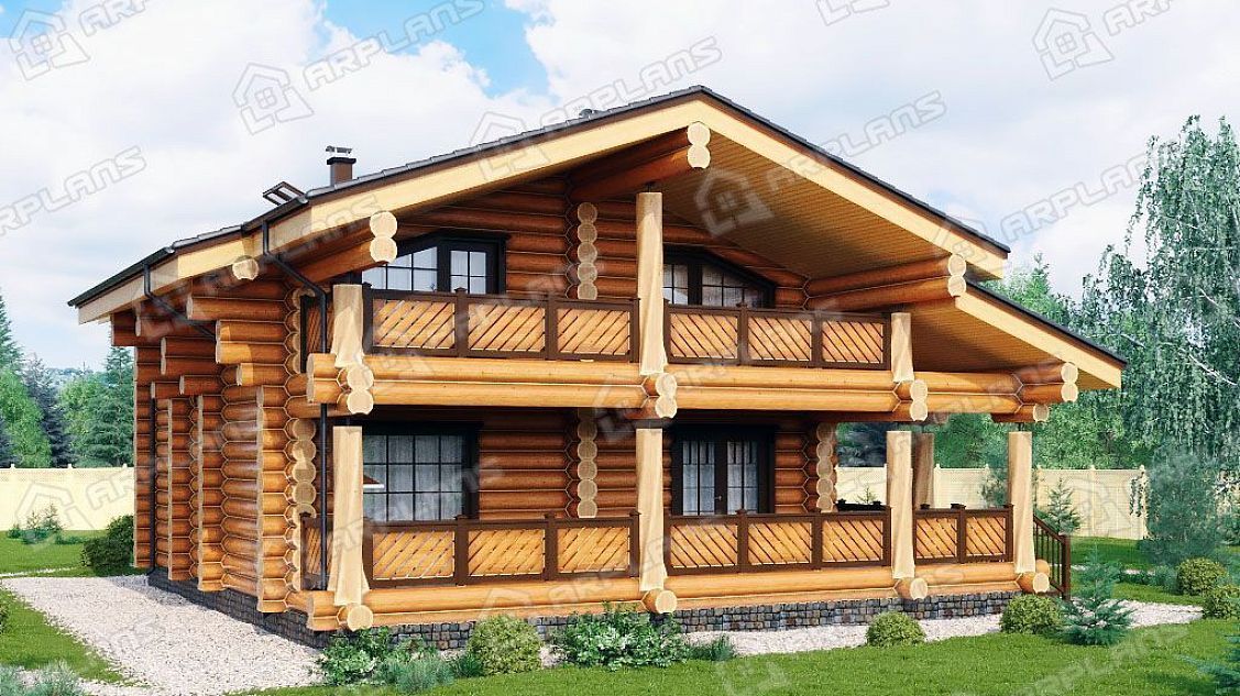Проект деревянного дома из бревна 9 на 10 м с 3 спальнями и сауной S4-191 (ДО-132)