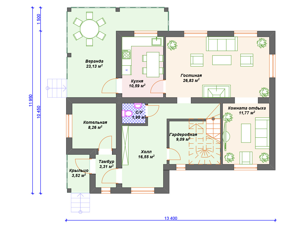 | Возможный материал кровли | металлочерепица, гибкая черепица, керамическая черепица, композитная черепица, цементно-песчаная черепица, фальцевая кровля |