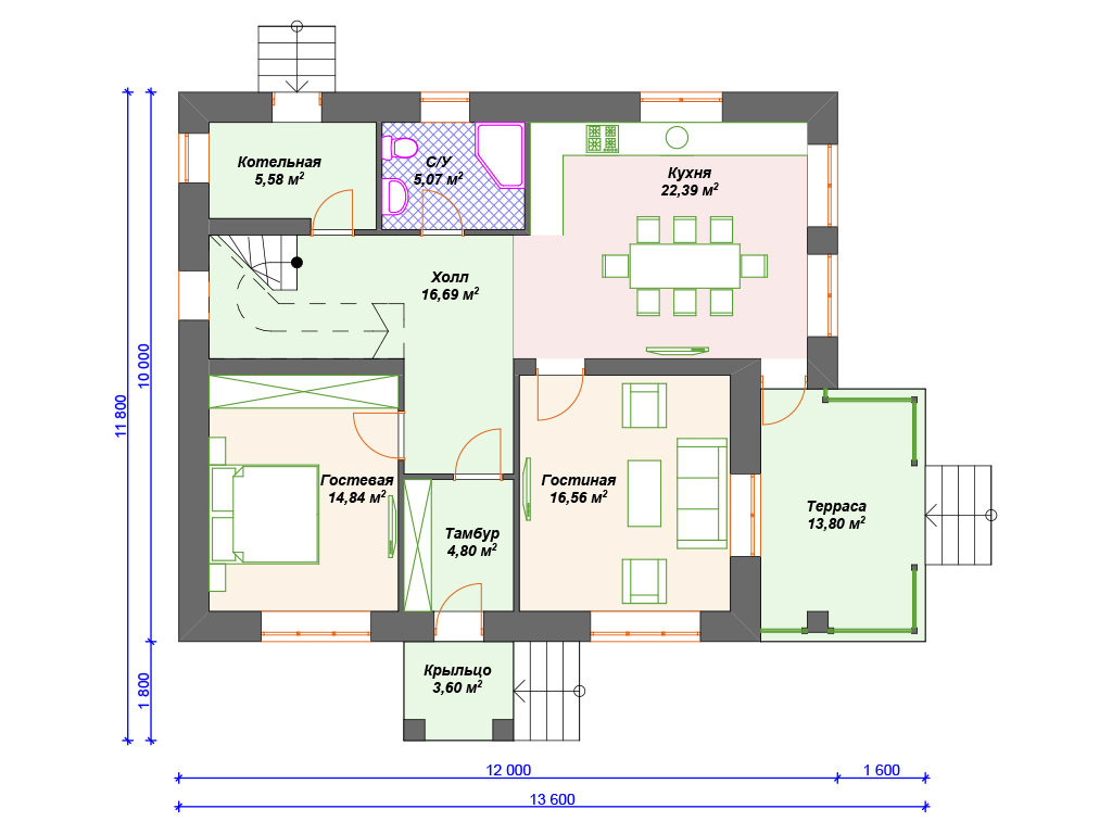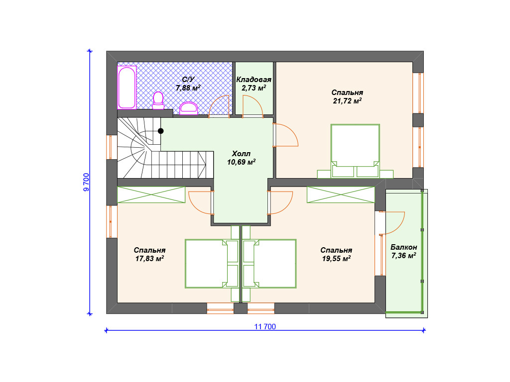 Проект каменного дома с 3 спальнями S4-191 (К-268)