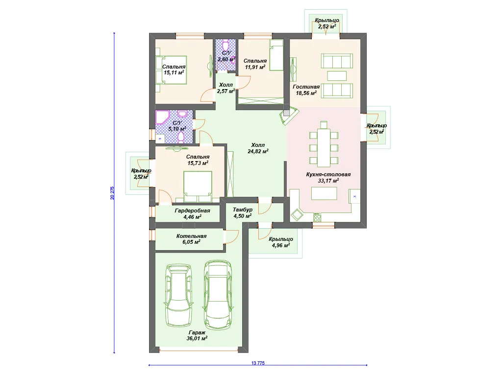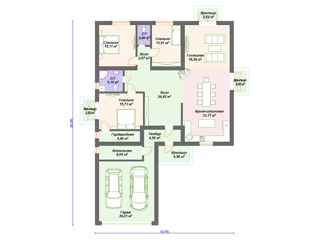 Проект одноэтажного дома с гаражом на 2 машины S4-193 (К-098)
