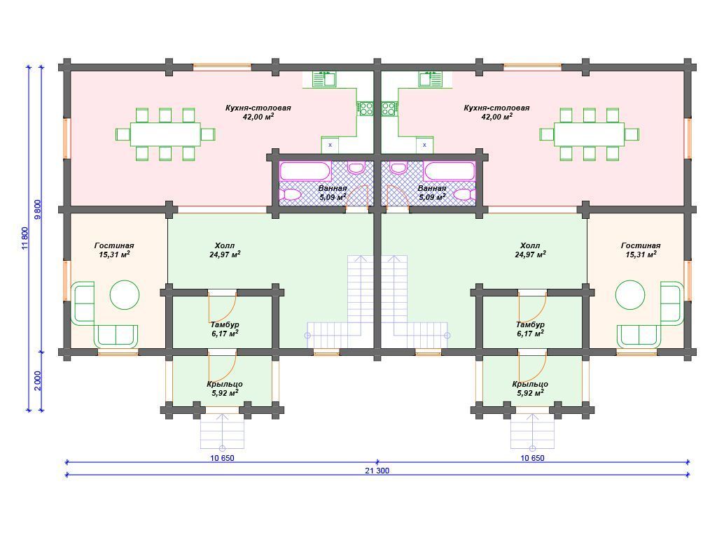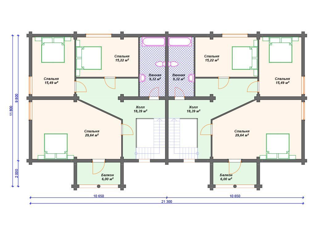 Проект деревянного дома на 2 семьи S4-194 (ДО-053)