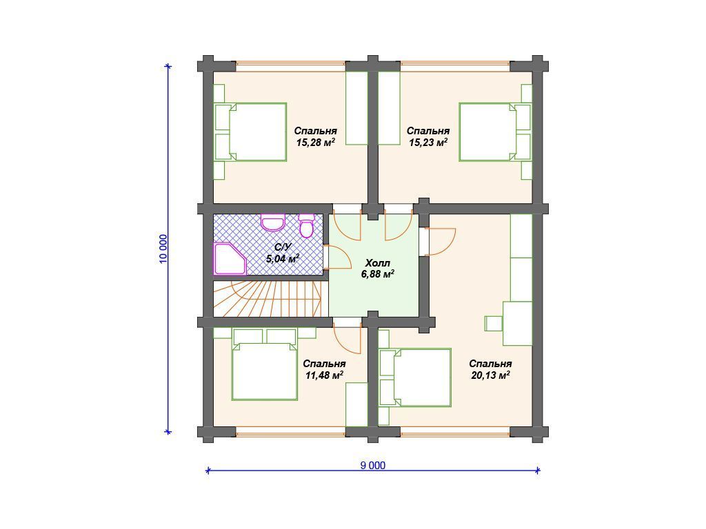 Проект деревянного дома из бревна 10 на 14 м с мансардой S4-195 (ДО-129)