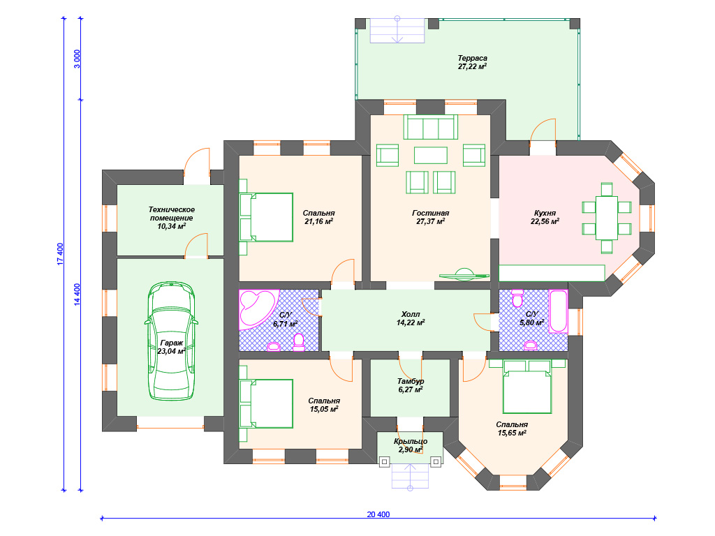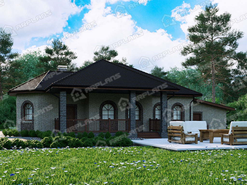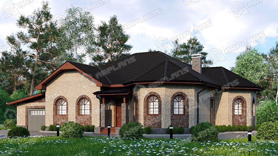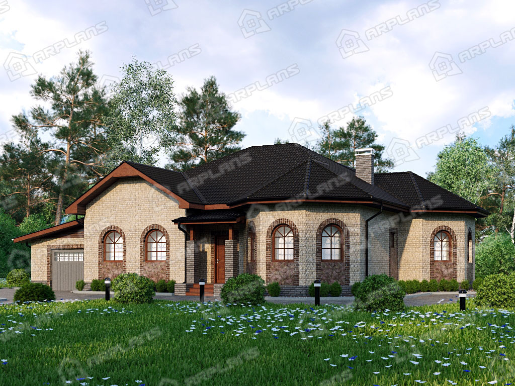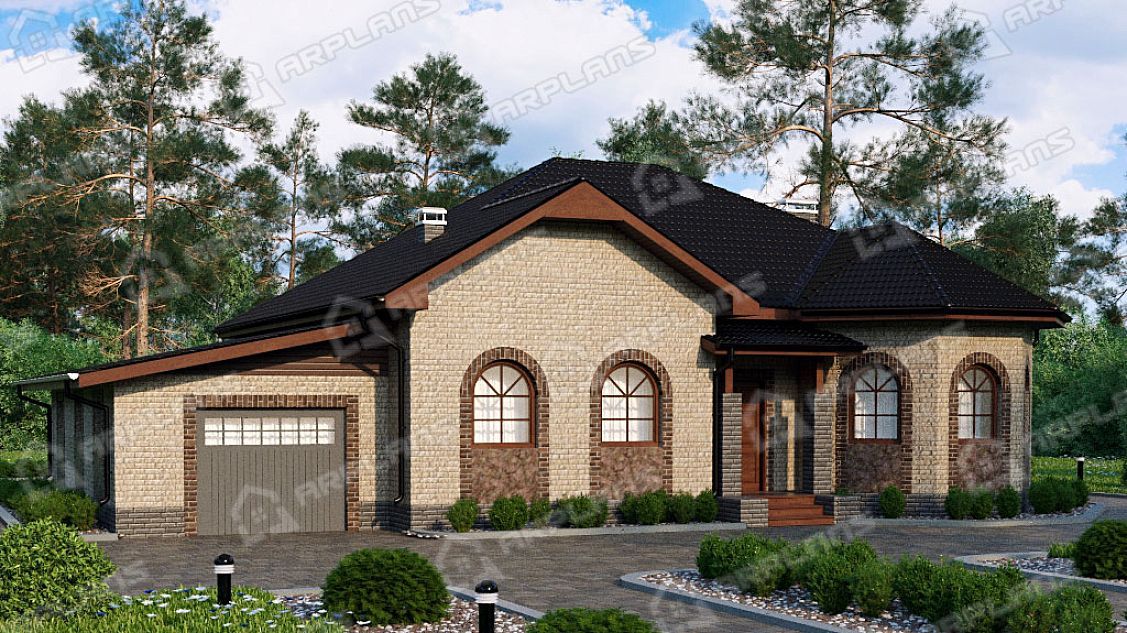 Проект каменного дома с гаражом и 3 спальнями S4-198 (К-251)