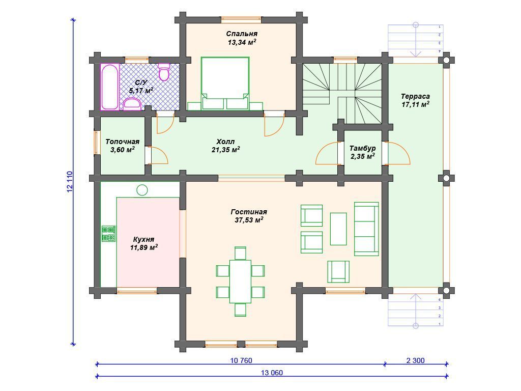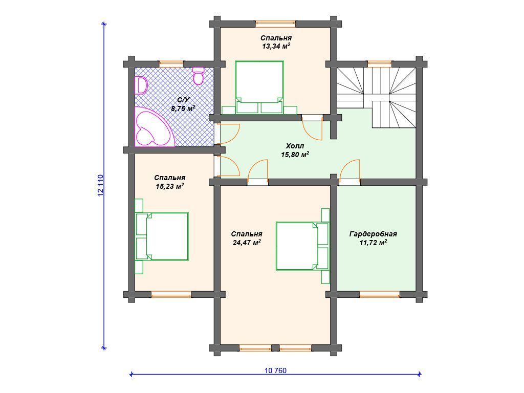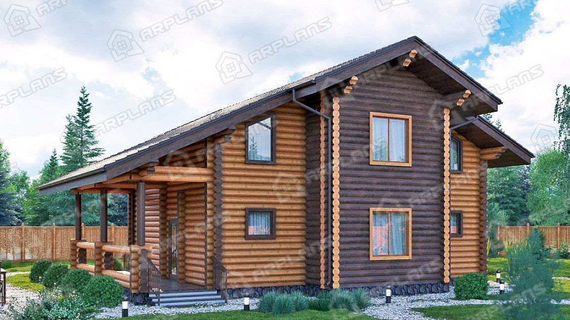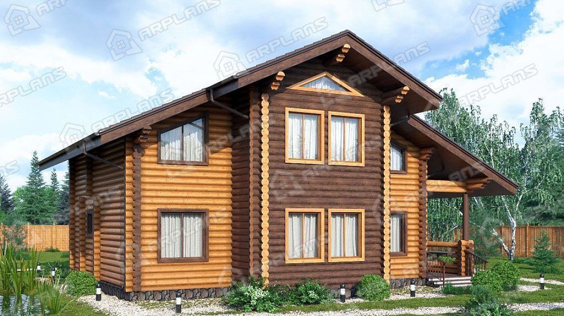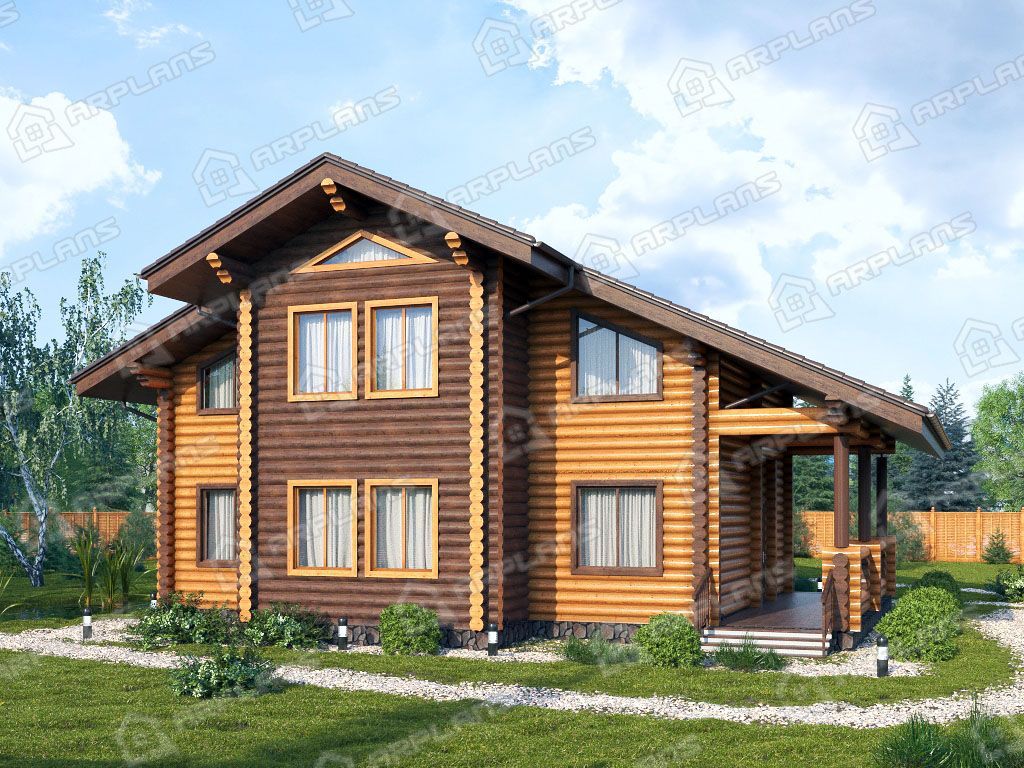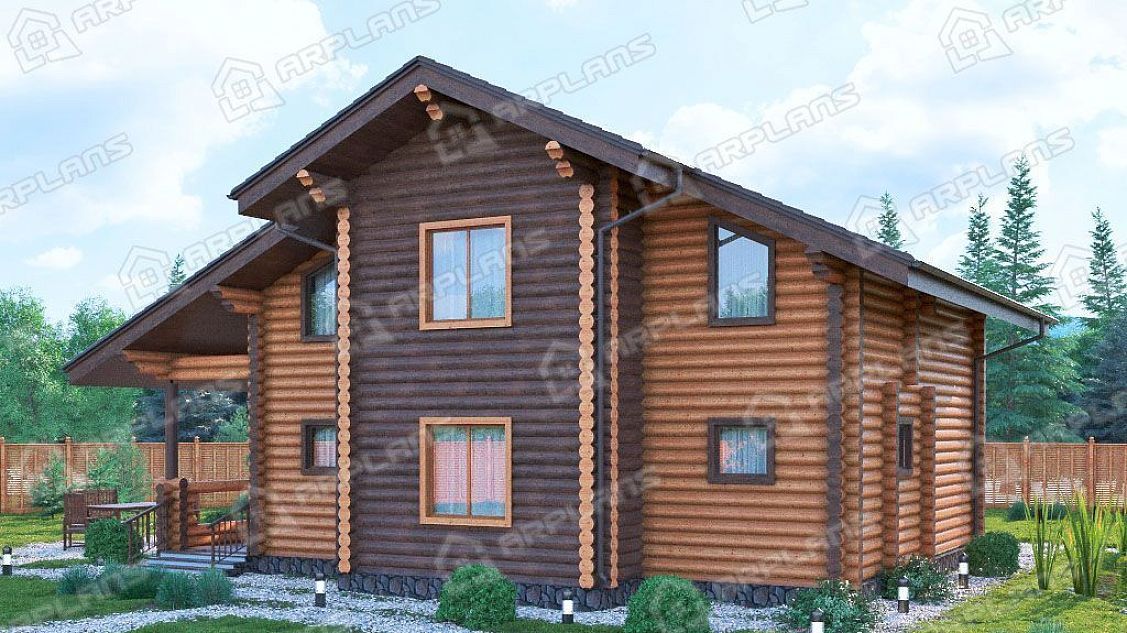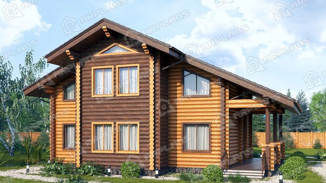 Проект деревянного дома из бревна 11 на 12 м с террасой и мансардой S4-202 (ДО-116)