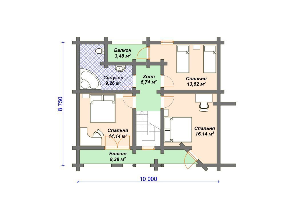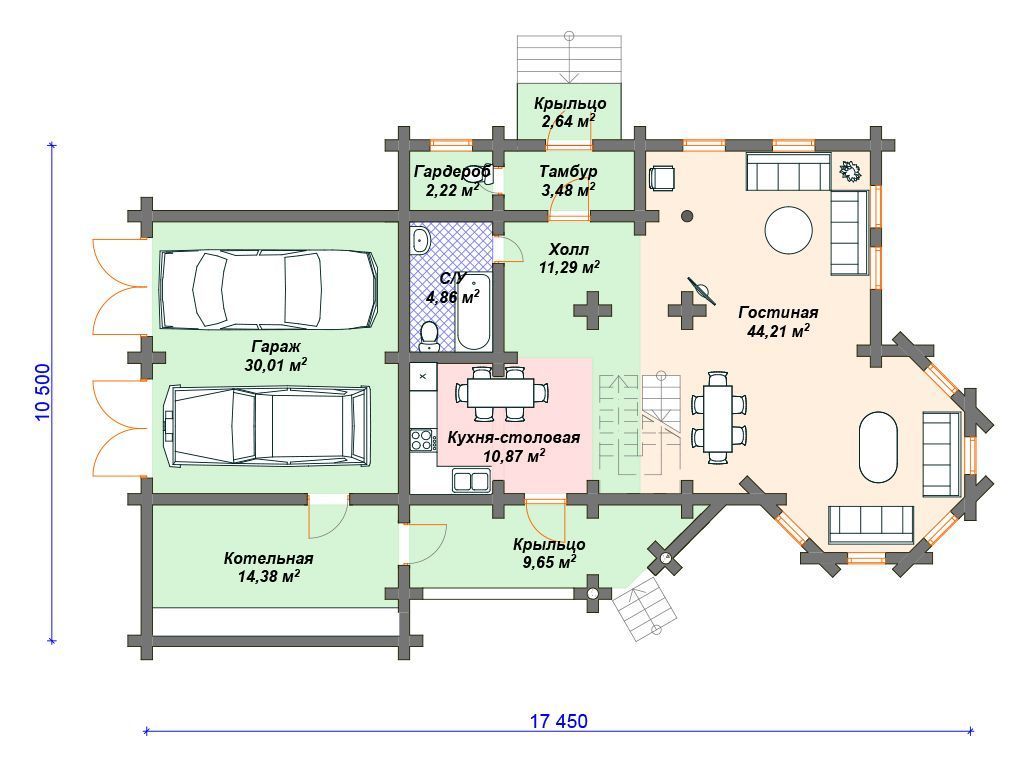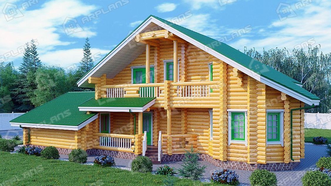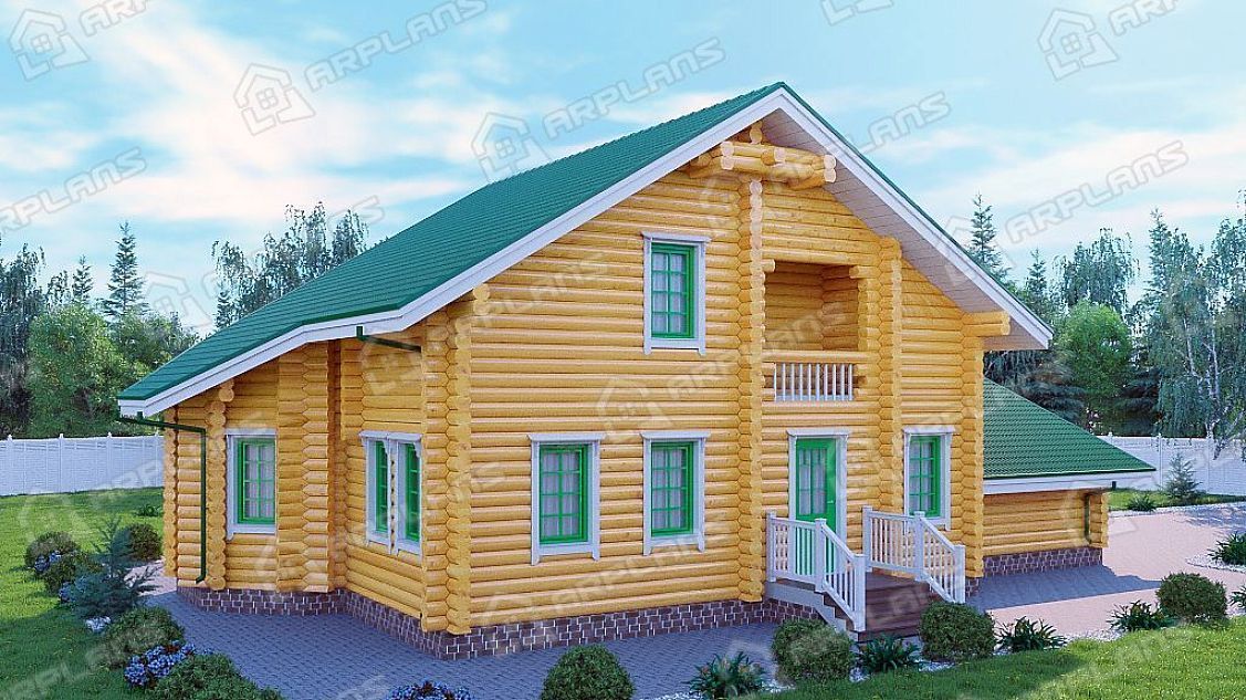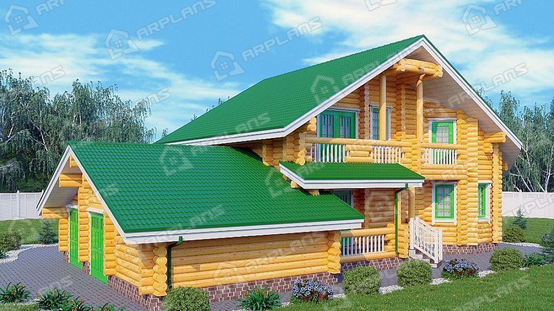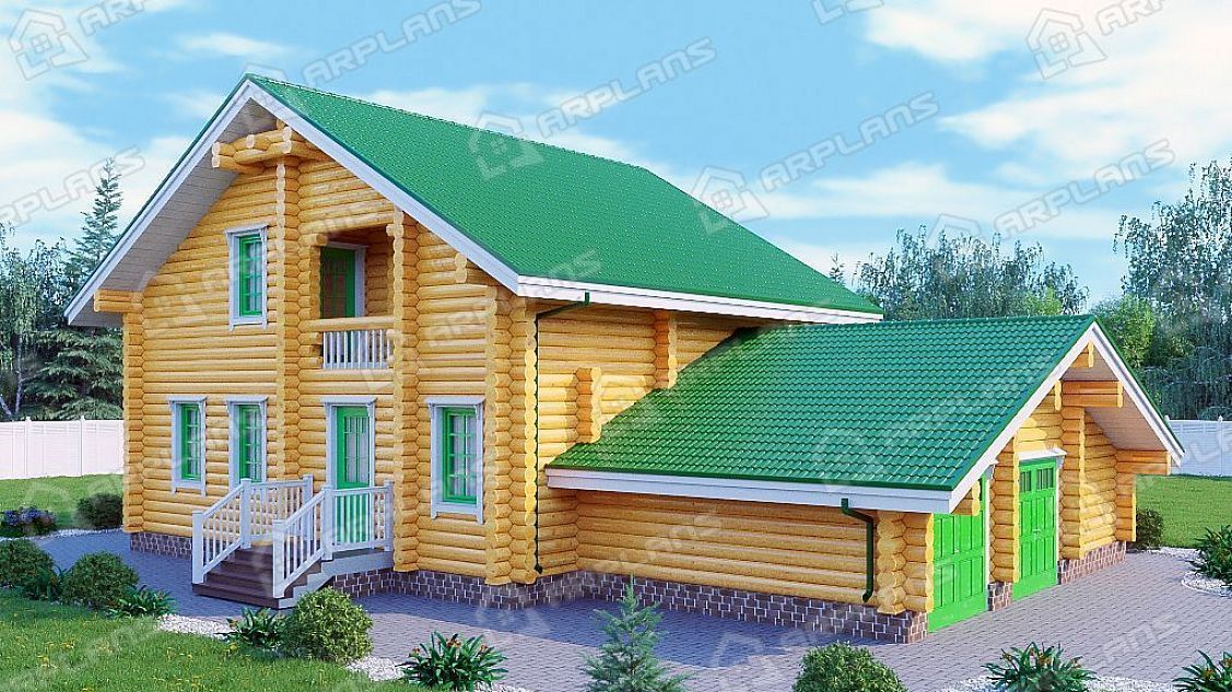 Проект деревянного дома из бревна 10 на 17 м с гаражом на 2 машины S4-204 (ДО-080)