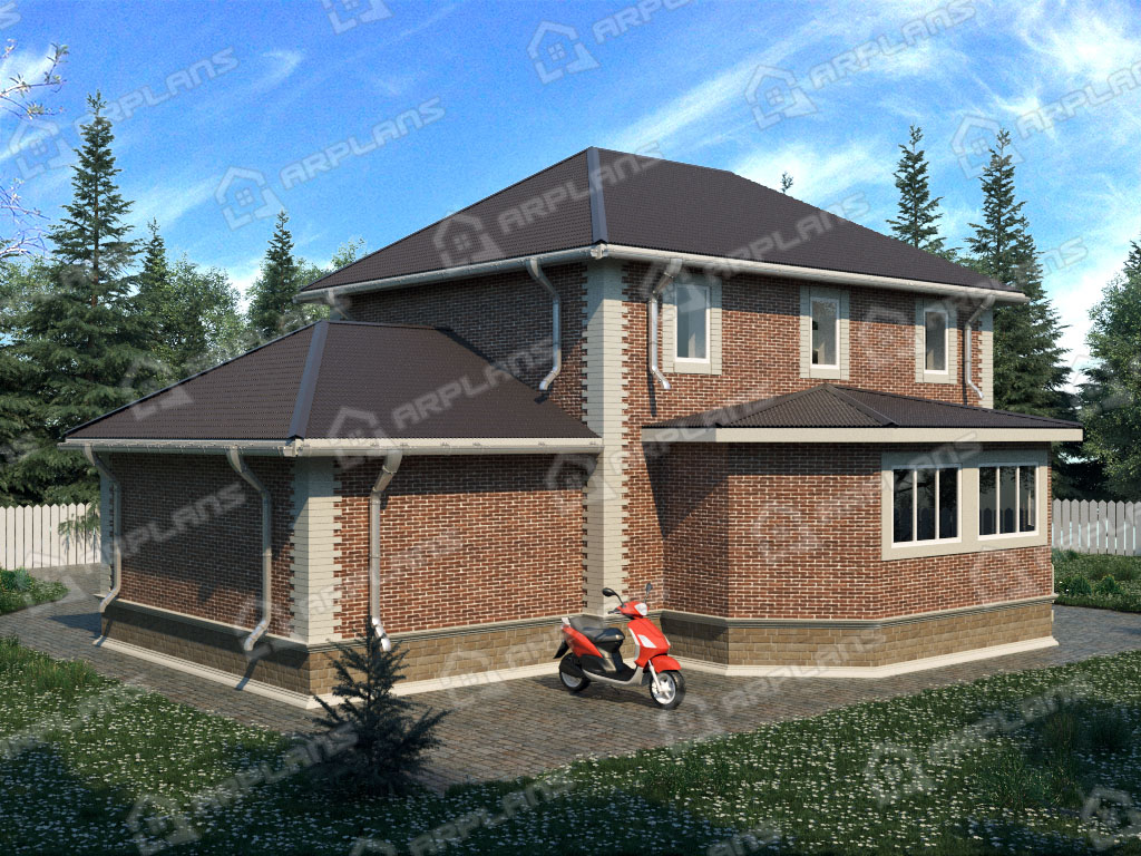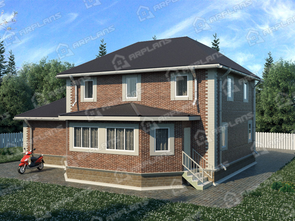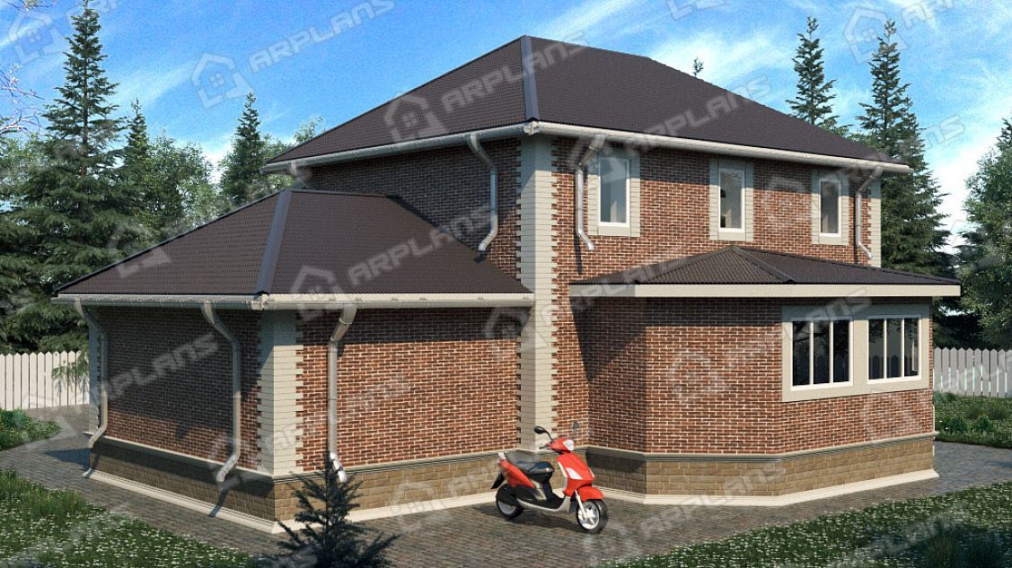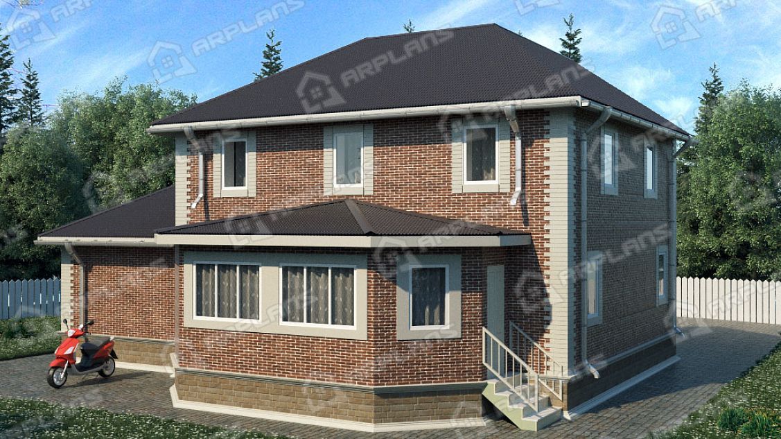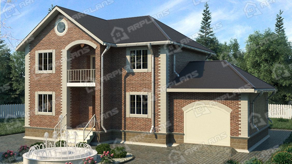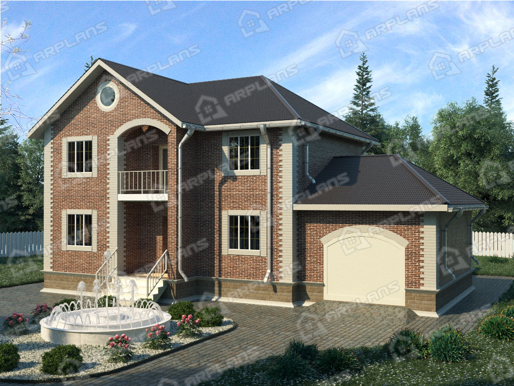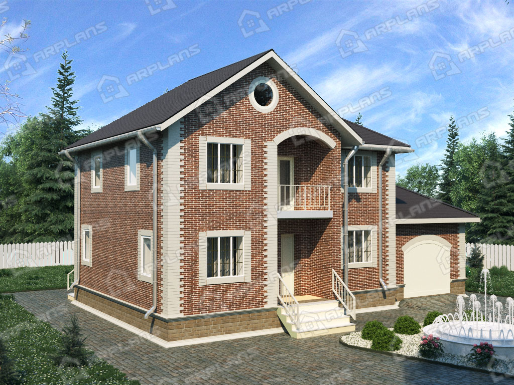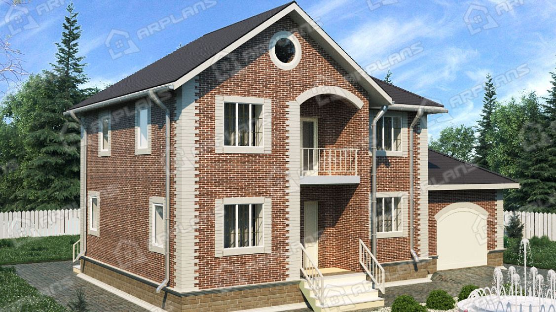 Проект каменного дома с гаражом и 3 спальнями S4-207 (К-082)