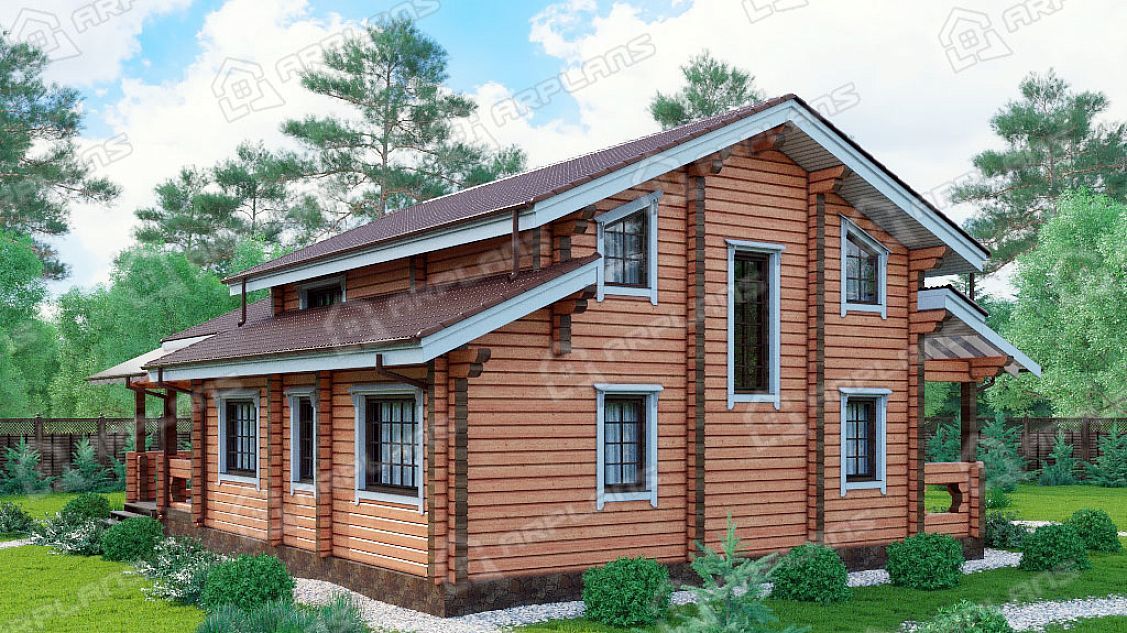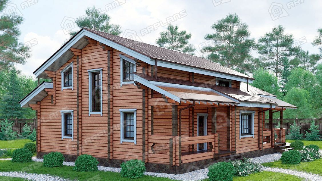 S4-210 (ДС-123). Деревянный дом с мансардой покоряет простотой своей формы и практичностью принятых инженерных решений. Благодаря огромному количеству спален его можно использовать для проживания многодетной семьи или для сдачи в аренду большим компаниям.