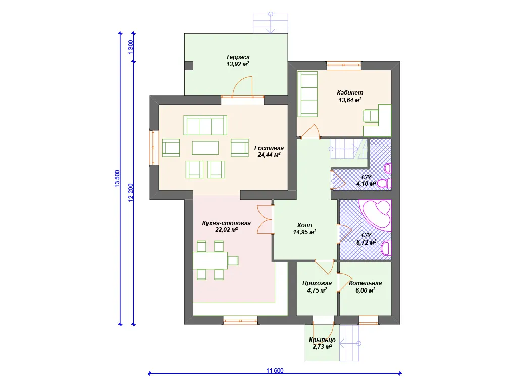 | Возможный материал кровли | металлочерепица, гибкая черепица, керамическая черепица, композитная черепица, цементно-песчаная черепица, фальцевая кровля |