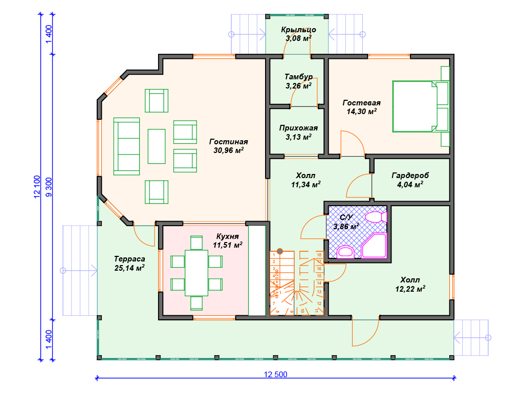 | Возможный материал кровли | металлочерепица, гибкая черепица, керамическая черепица, композитная черепица, цементно-песчаная черепица, фальцевая кровля |