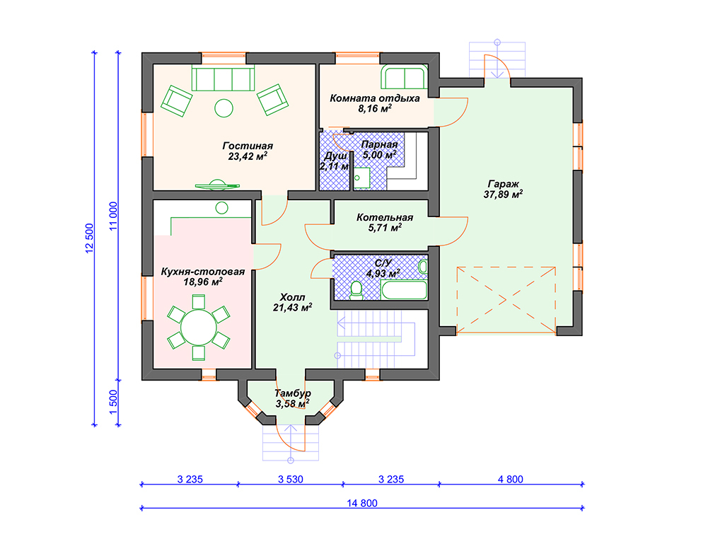 | Гараж | 1 машина |