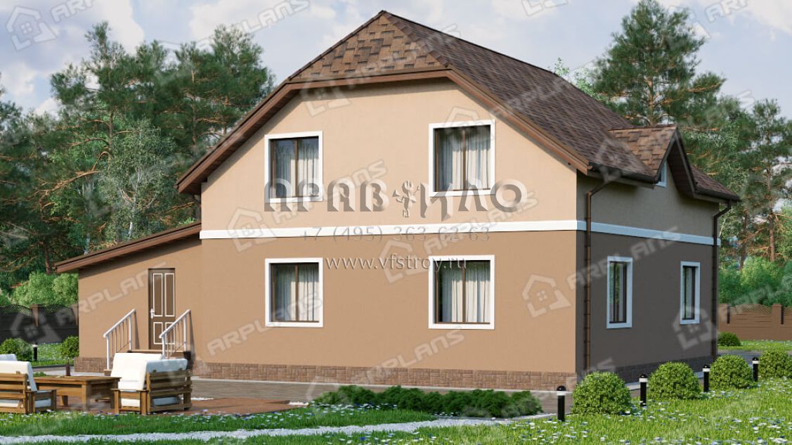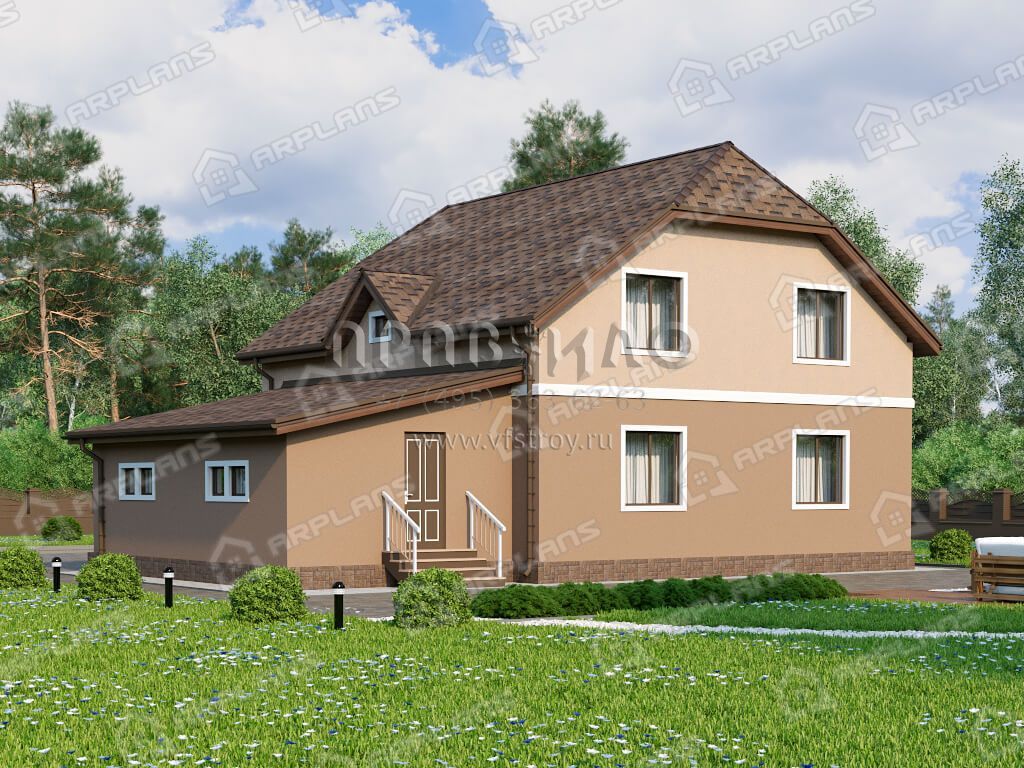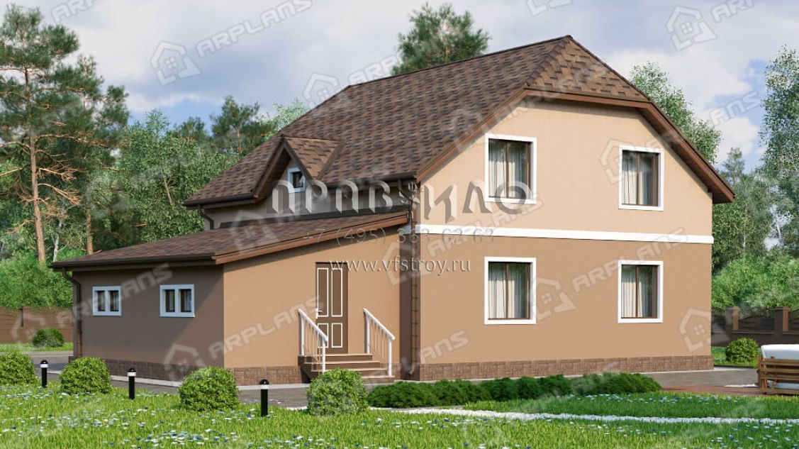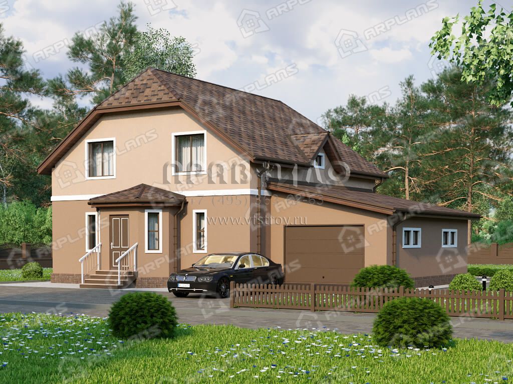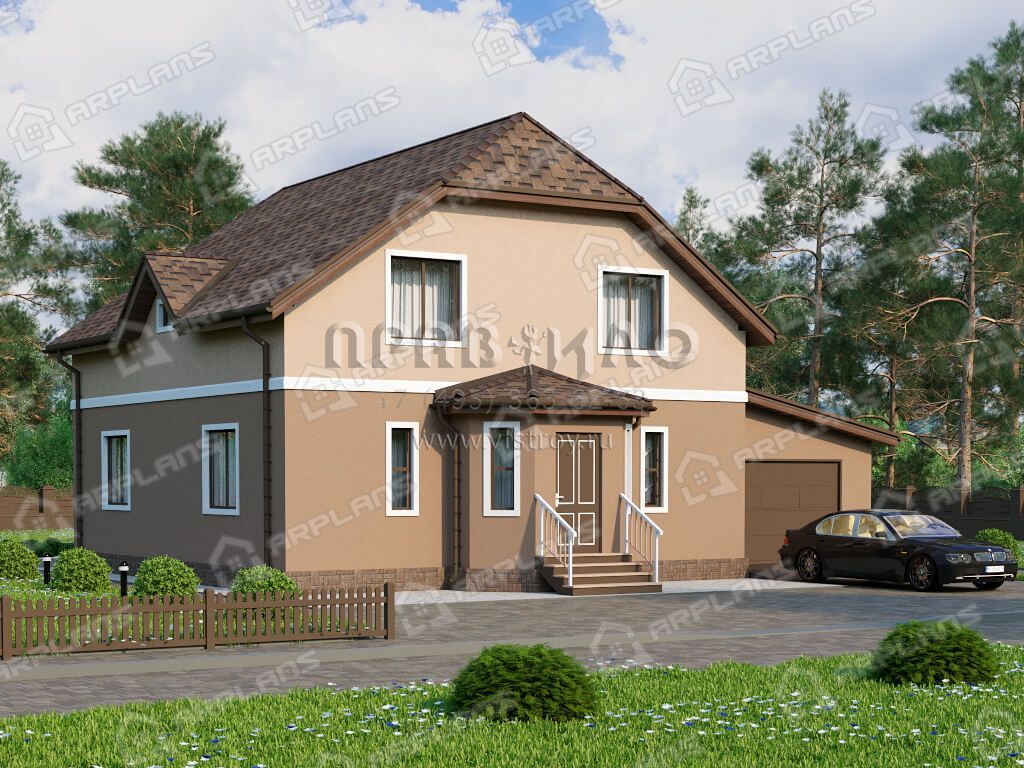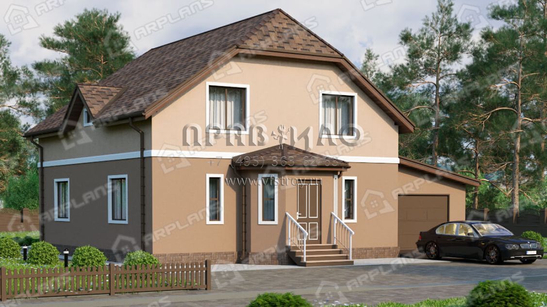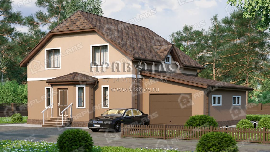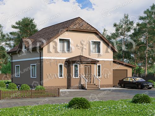 Проект дома с мансардой, 3 спальнями и гаражом S4-215 (К-058)