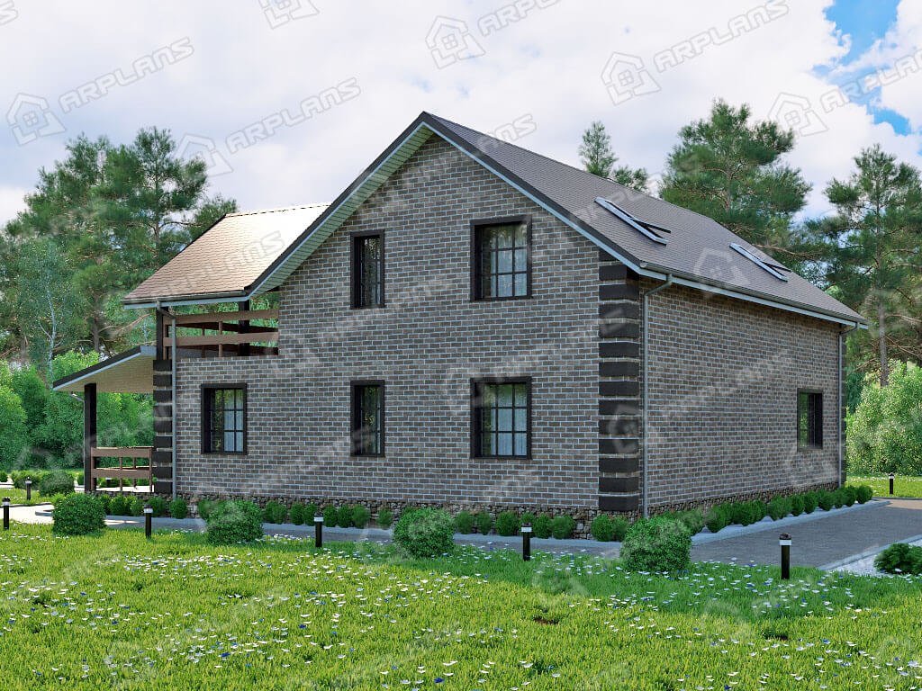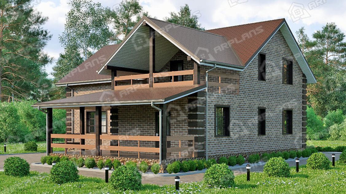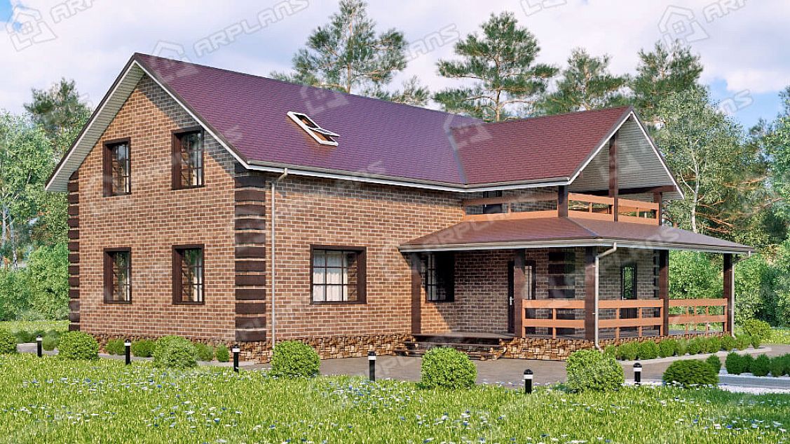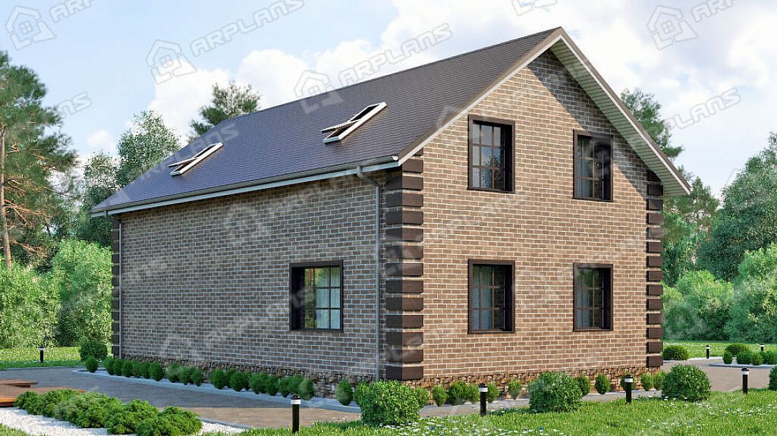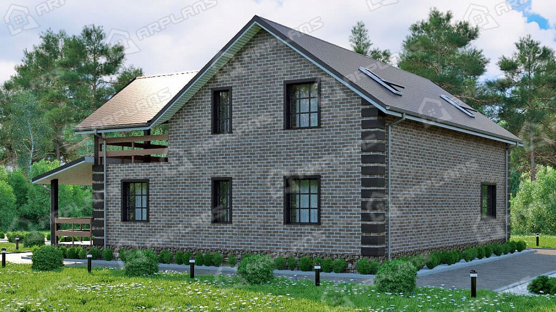 S4-220 (К-020) Дом выполнен из кирпича, с облицовкой наружных стен - облицовочным кирпичом. Строительство здания осуществляется на фундаменте - монолитная плита. Входим в дом с г-образной террасы площадью 18.58 кв м, накрытой отдельной крышей от дома. Первый этаж отведен под дневную зону и технические помещения. Терраса заменяет крыльцо, с которой можно попасть в прихожую и котельную 7.69 кв м, рассчитанную под газовое оборудование. Так же в котельной предусмотрен дополнительный вход с террасы. Из прихожей далее проходим в небольшой холл около 4 кв м. Сразу при входе по правую руку размещён с/у с ванной, прямо вход в кухню 18.34 кв м. Большая половина первого этажа отведена под просторную и большую гостиную, площадь которой 63.95 кв м. Здесь же расположена межэтажная лестница. Второй этаж спальная зона из трёх спальных комнат и совмещённого с/у с ванной 7 кв м. Две комнаты 18.90 кв м и одна 19.34 кв м. На этаже предусмотрен балкон, расположенный над террасой. Дом достаточно простой, но с комфортными площадями. Отлично подойдёт для круглогодичного проживания.