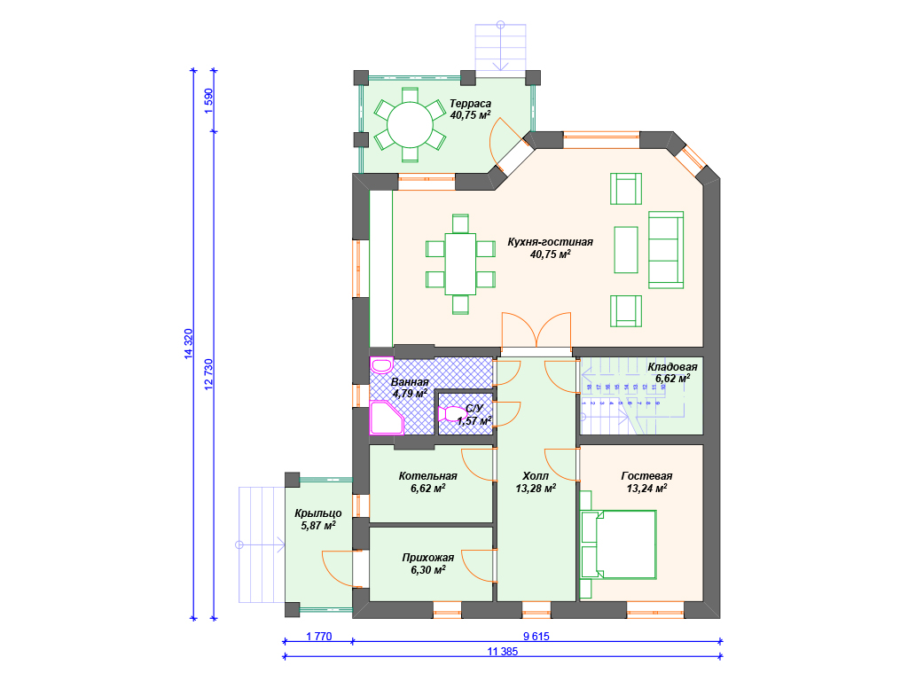 Проект каменного дома с 3 спальнями S4-221 (К-136)