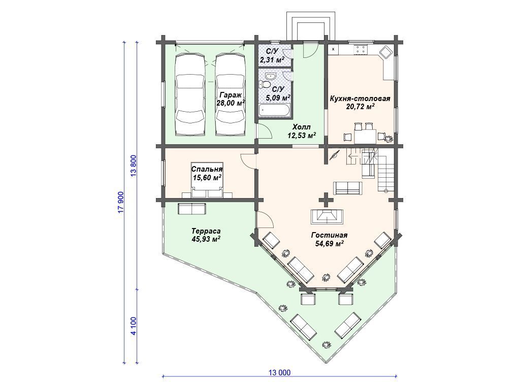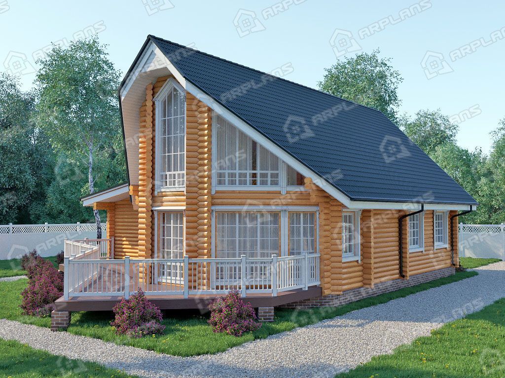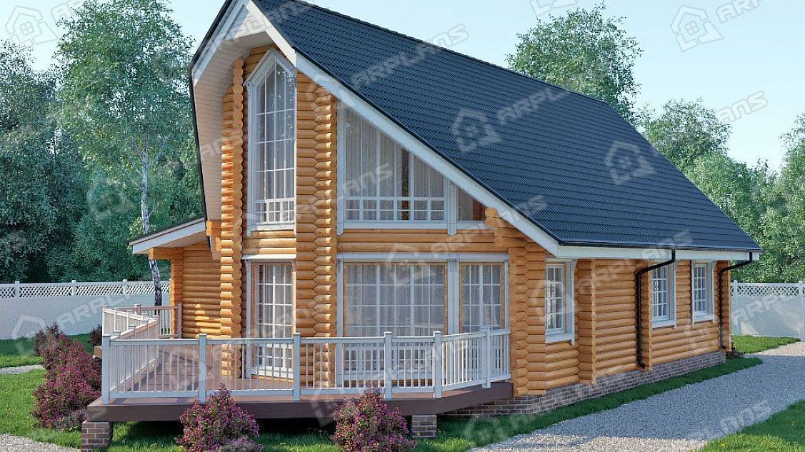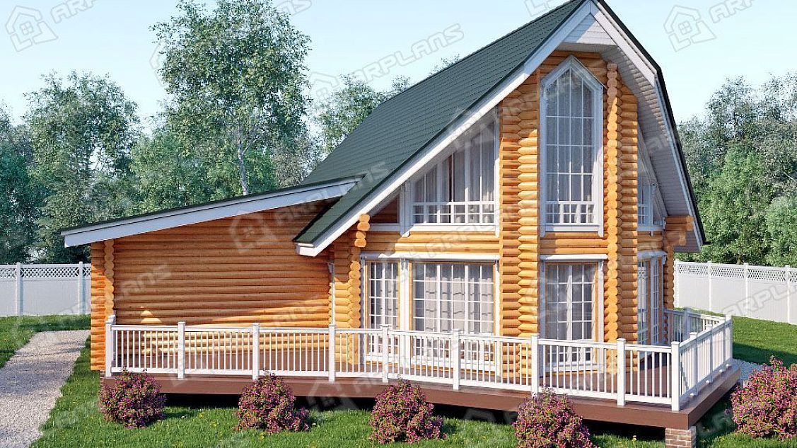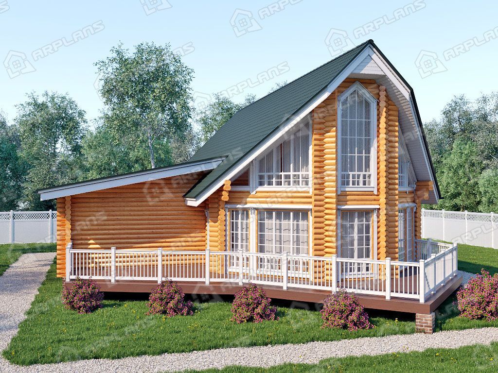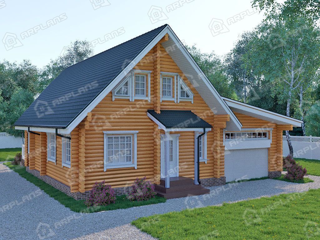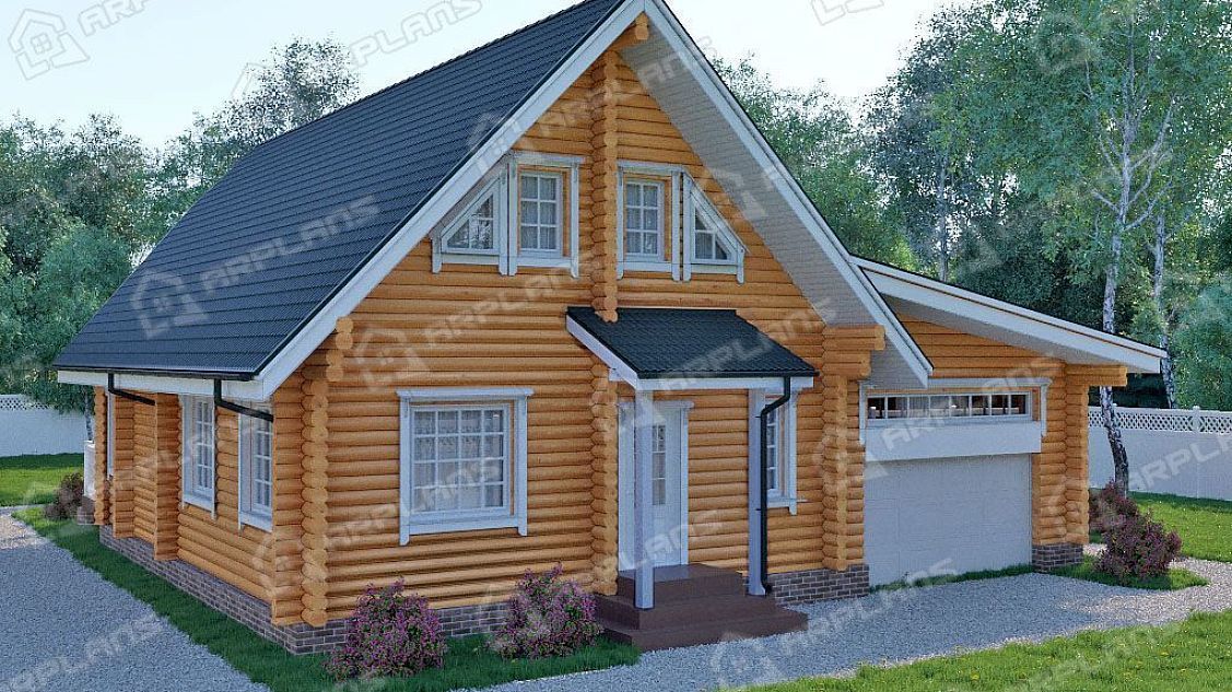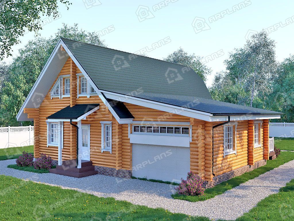 Проект деревянного дома из бревна с гаражом на 2 машины S4-230 (ДО-072)