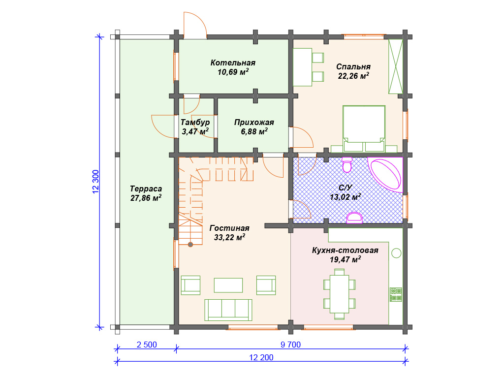 | Материал стен | оцилиндрованное бревно, профилированный брус, клееный брус |