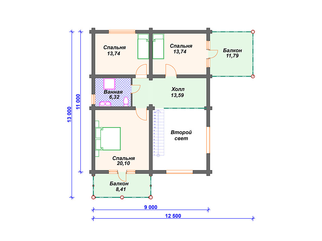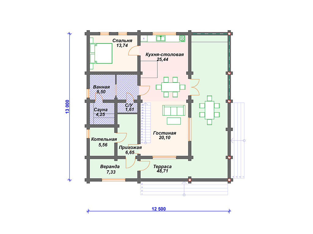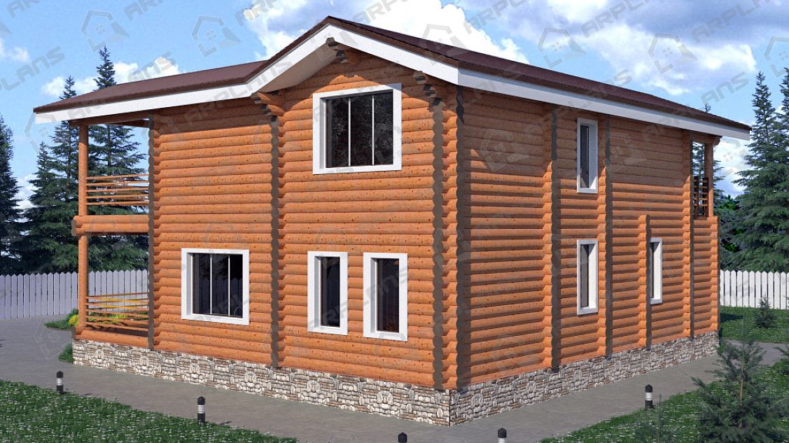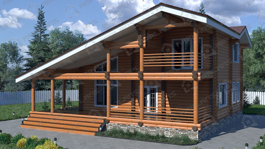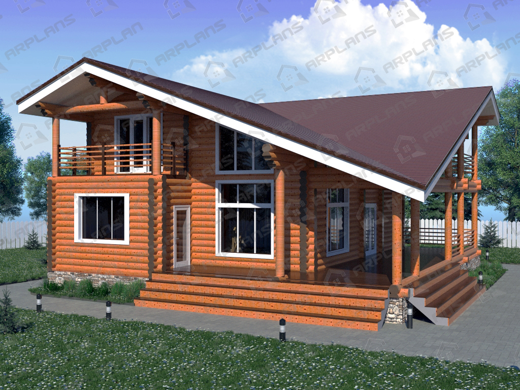 Проект деревянного дома из бревна 12 на 13 м с сауной S4-231 (ДО-012)