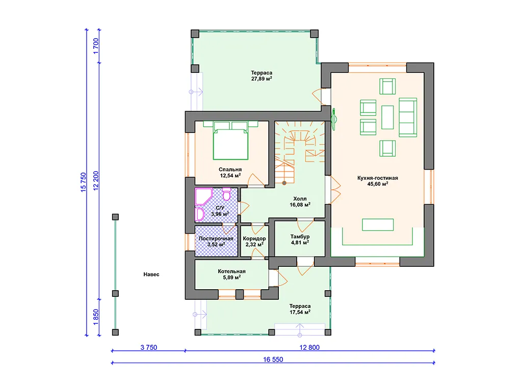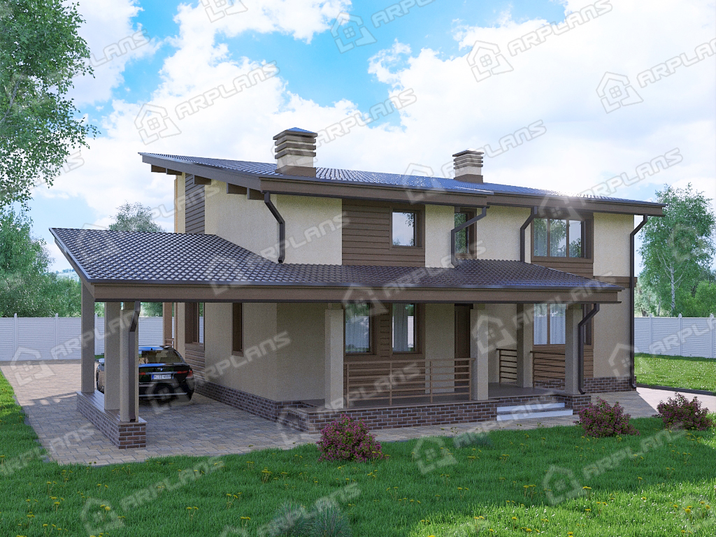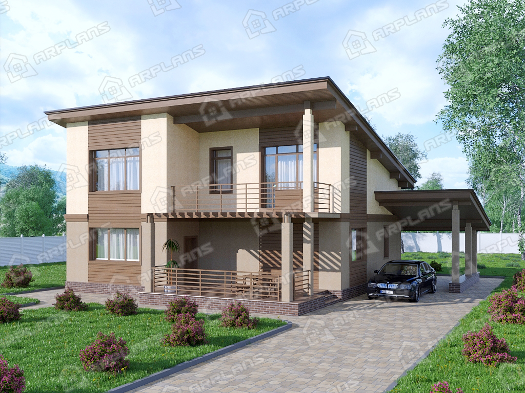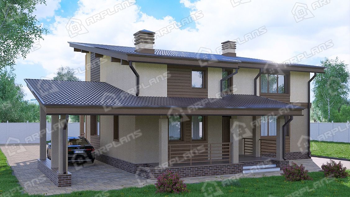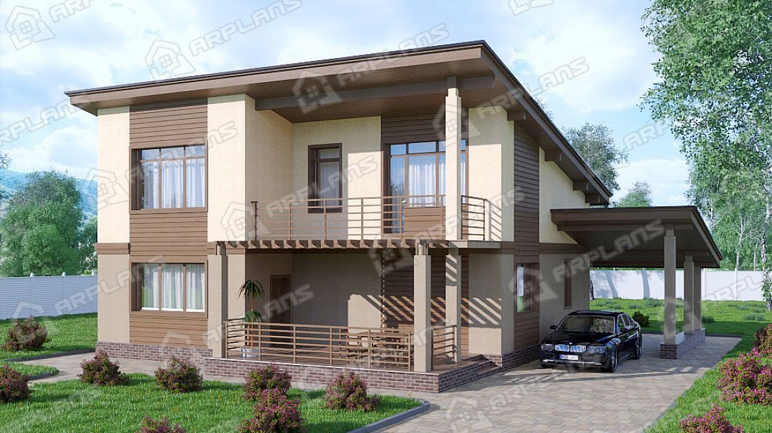 Проект каменного дома с навесом для машины S4-247 (К-163)