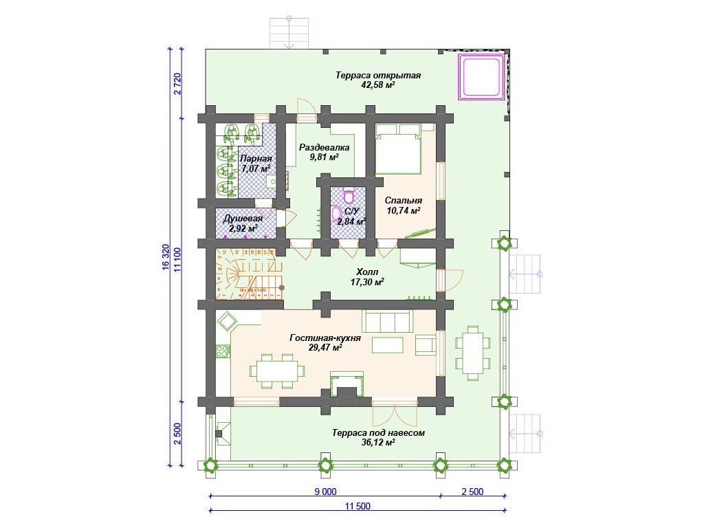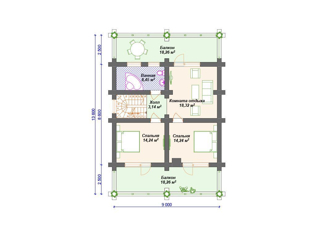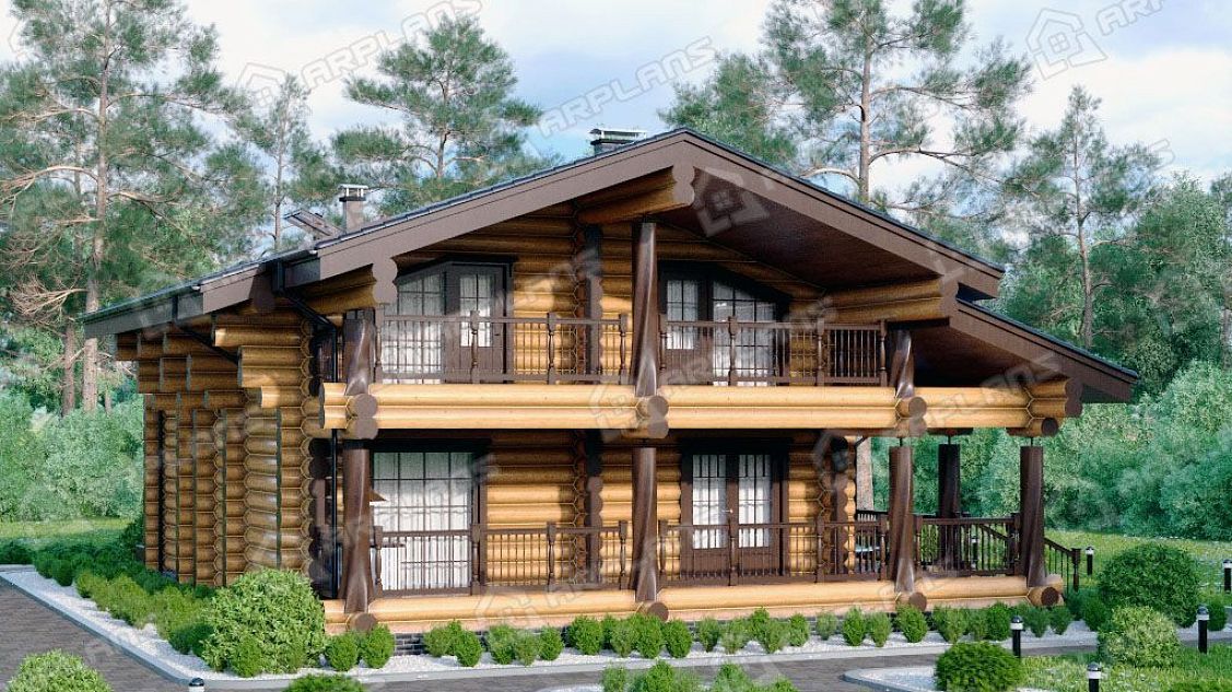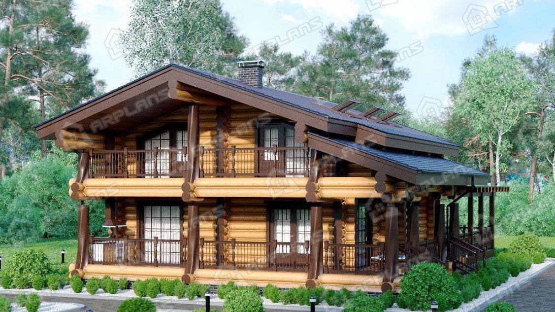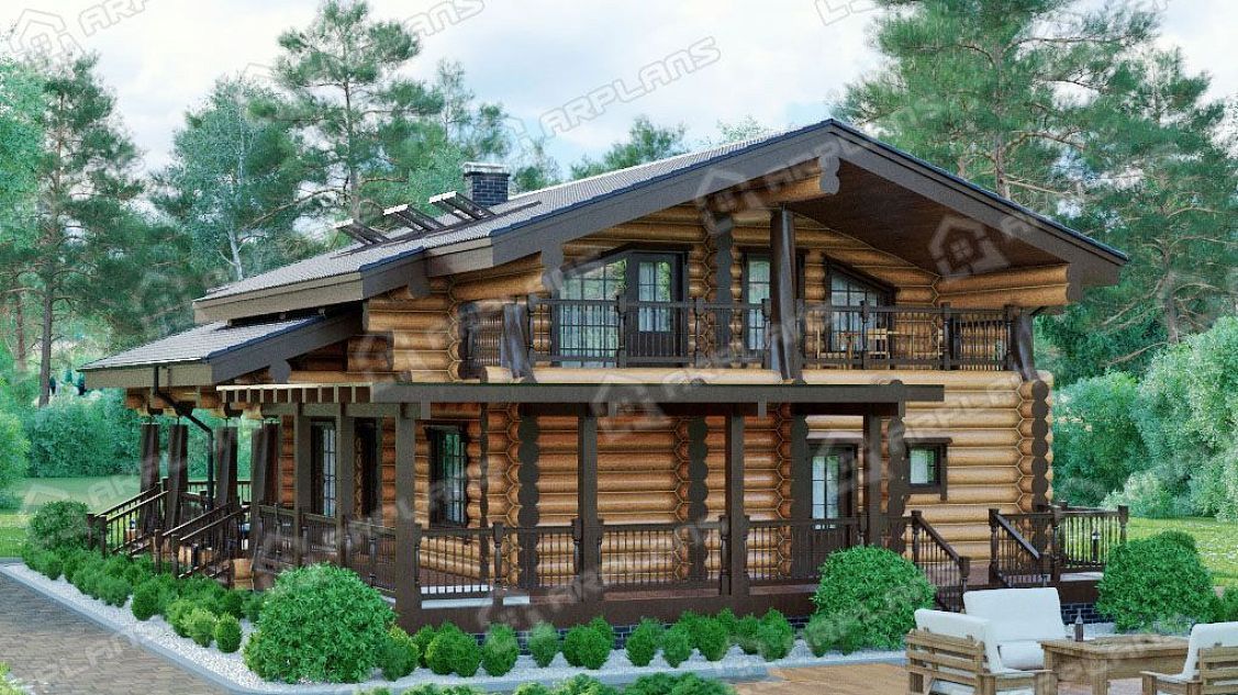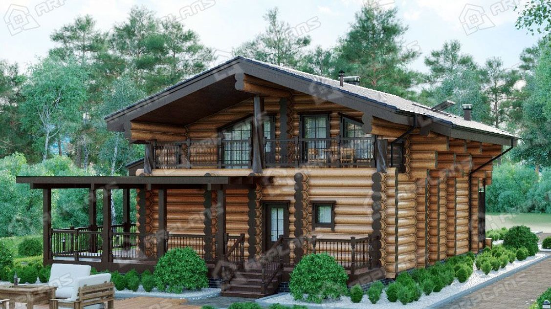 Проект деревянного дома из бревна 9 на 11 м с 3 спальнями и сауной S4-254 (ДО-133)