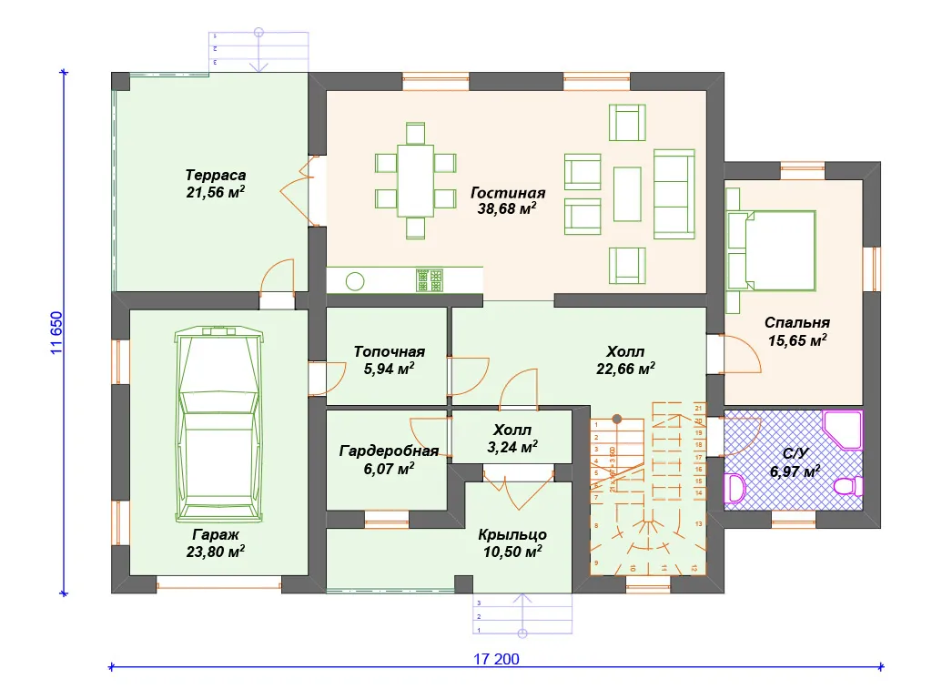 | Гараж | 1 машина |