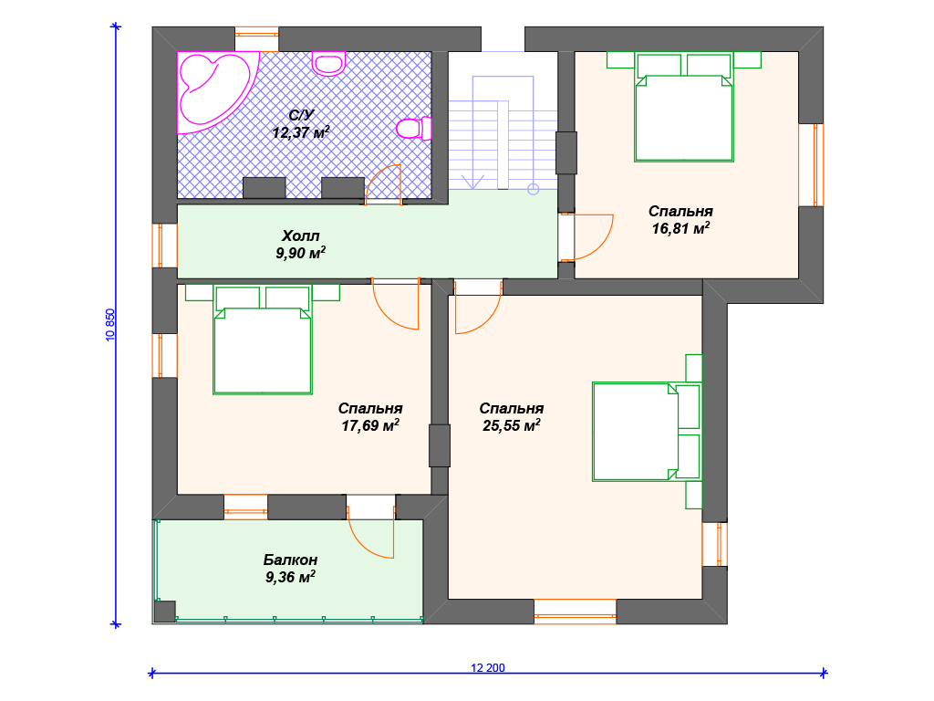 Проект каменного дома с 3 спальнями S4-259 (К-138)