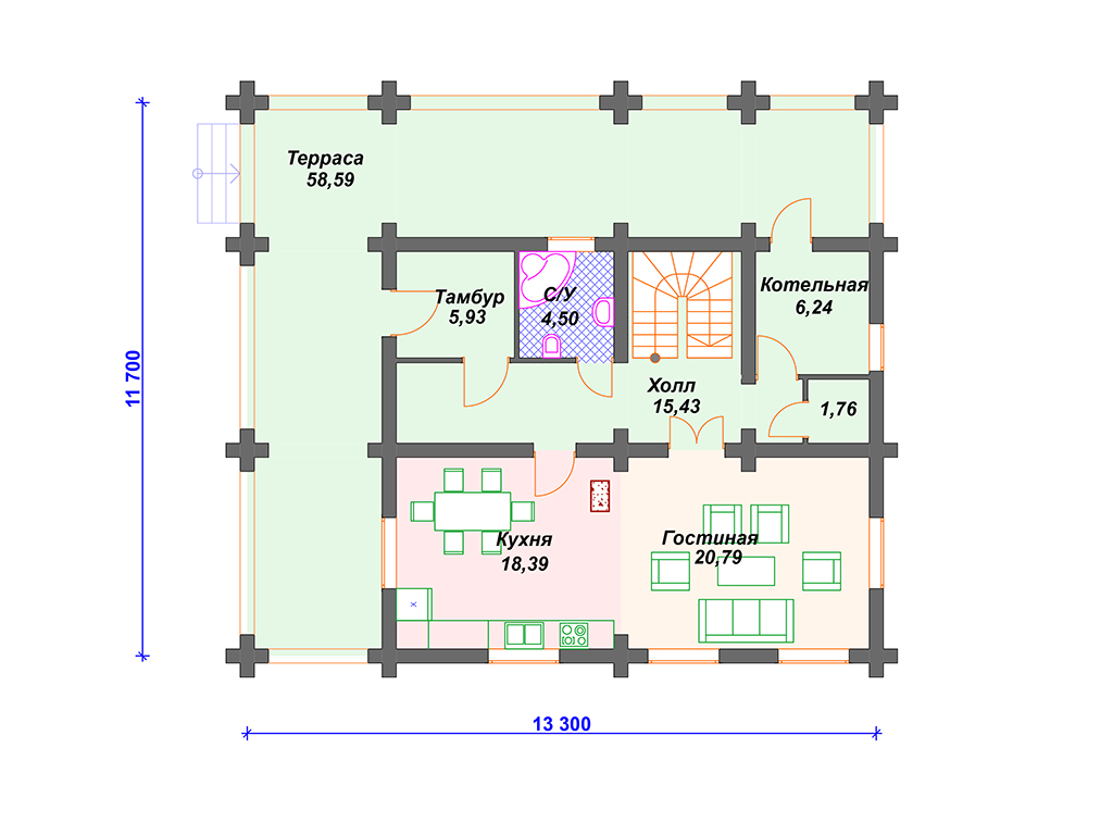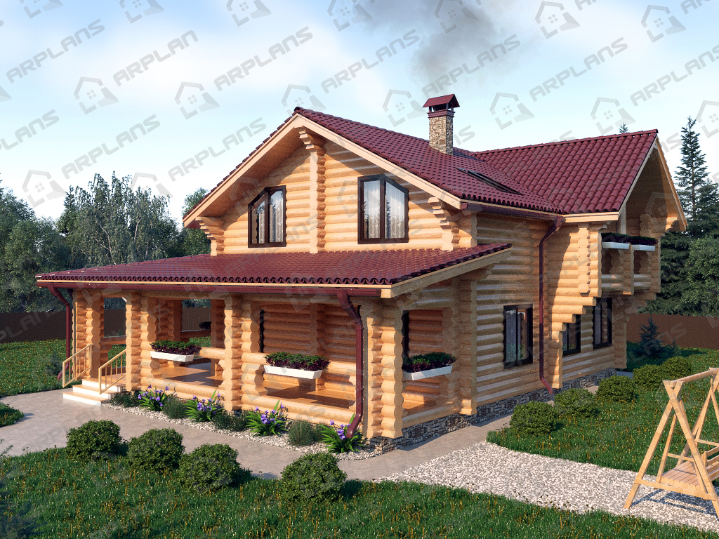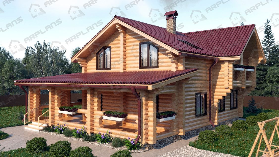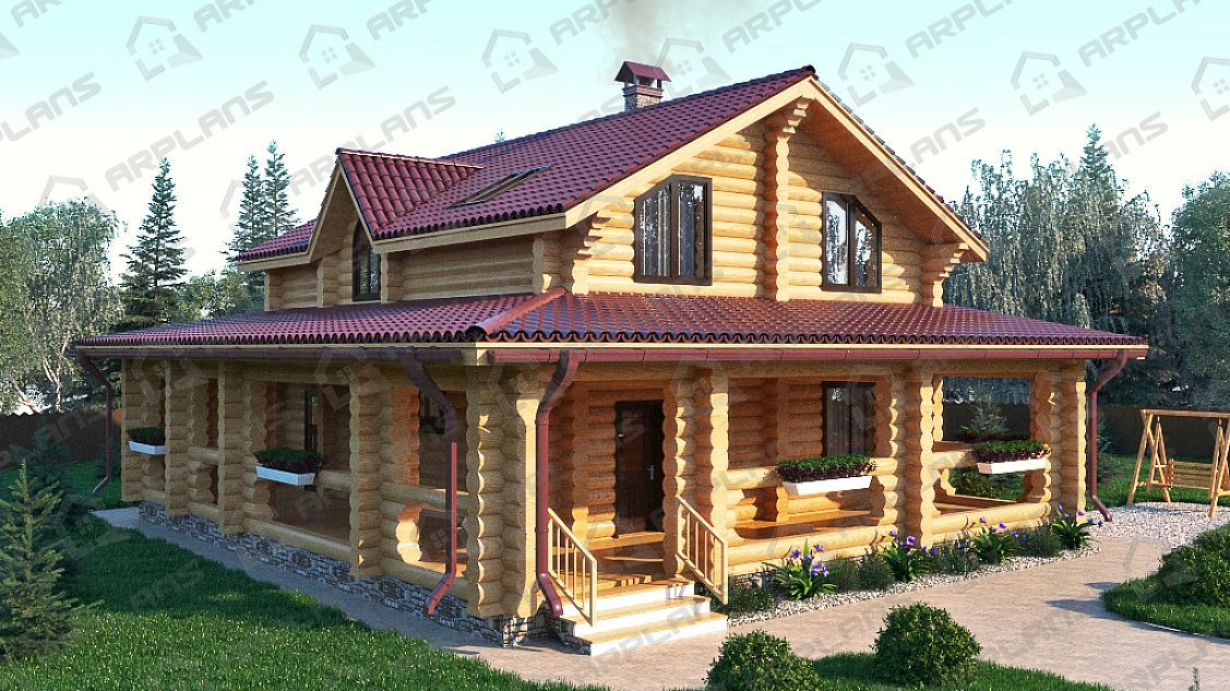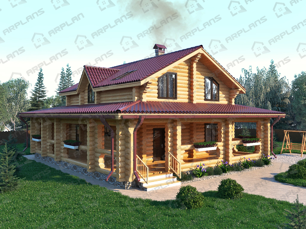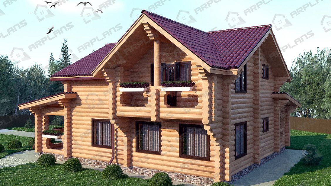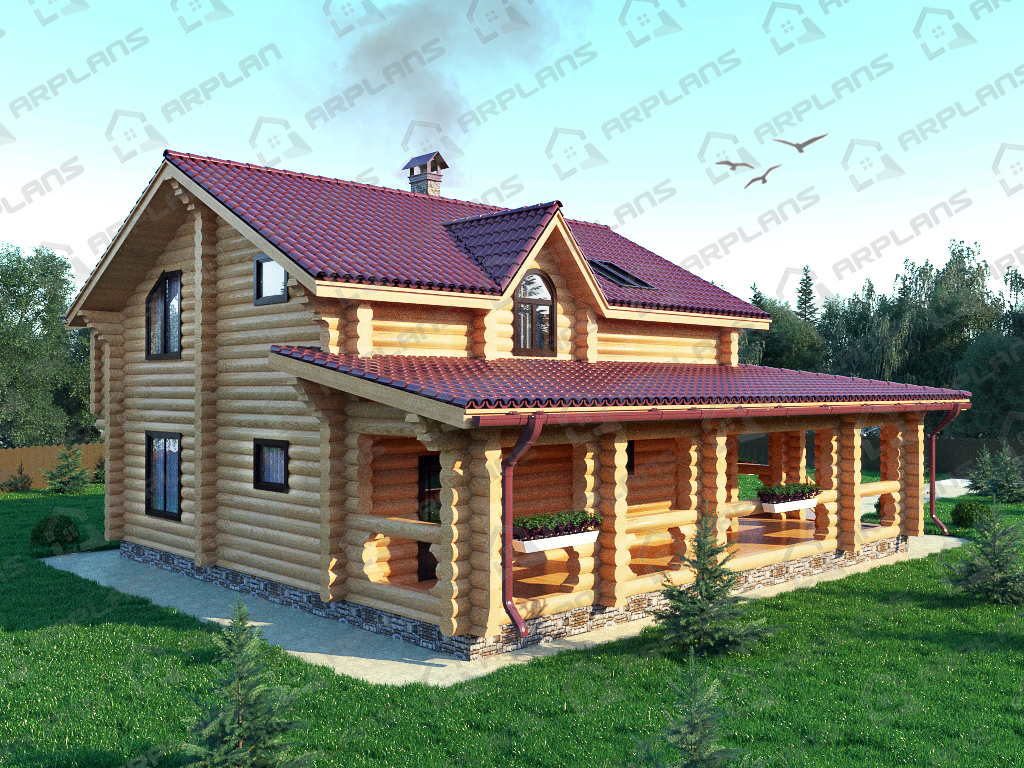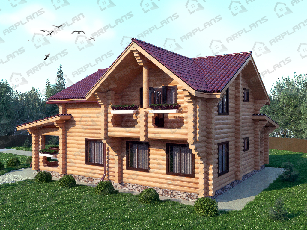 Проект деревянного дома из бревна 12 на 13 м с 3 спальнями S4-271 (ДО-013)